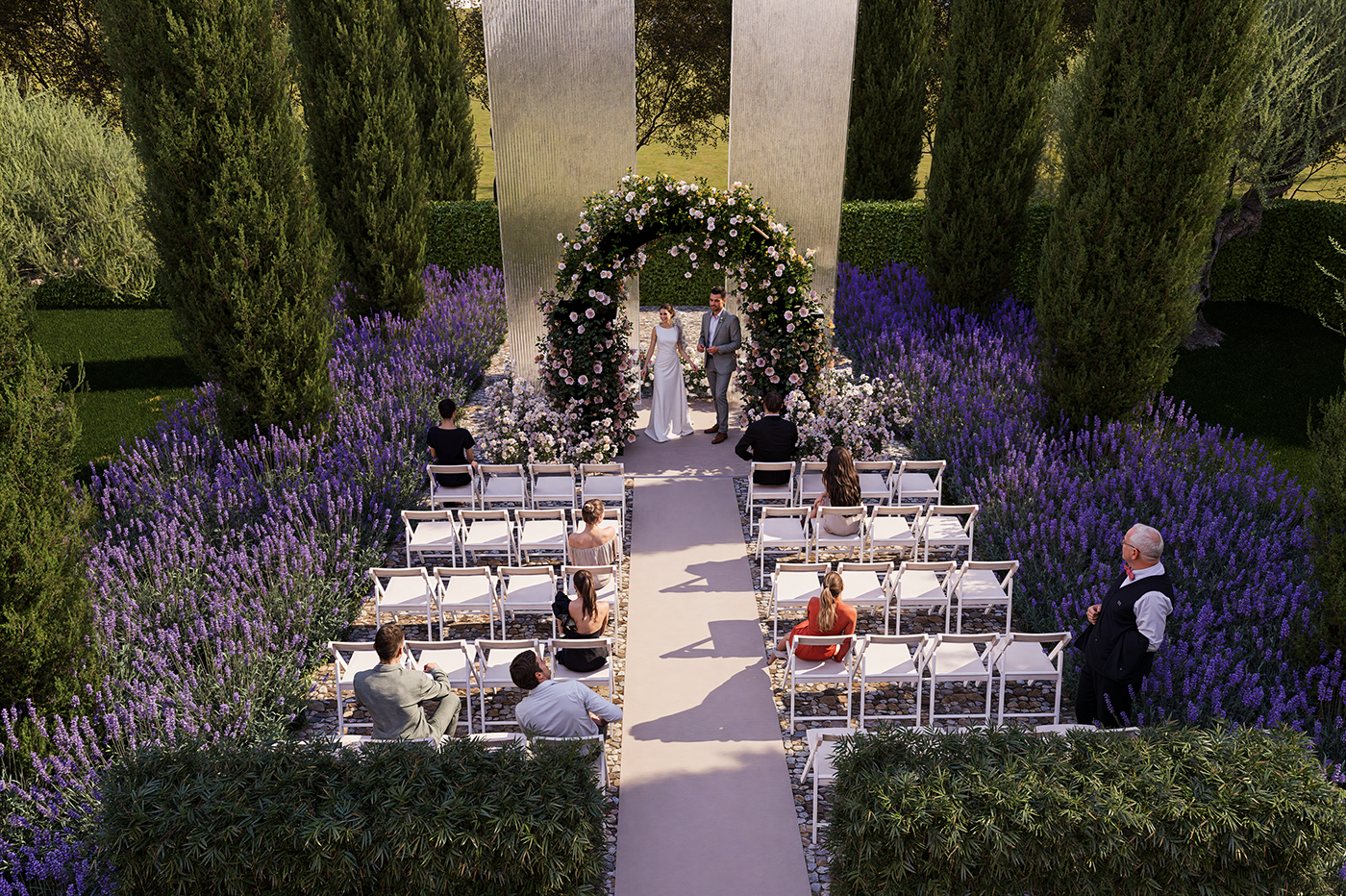 En 3D : Vous pouvez créer des scénarios totalement personnalisés : ambiance bohème en plein air, soirée chic sous les guirlandes, cérémonie au coucher du soleil, ou dîner sous chapiteau romantique.