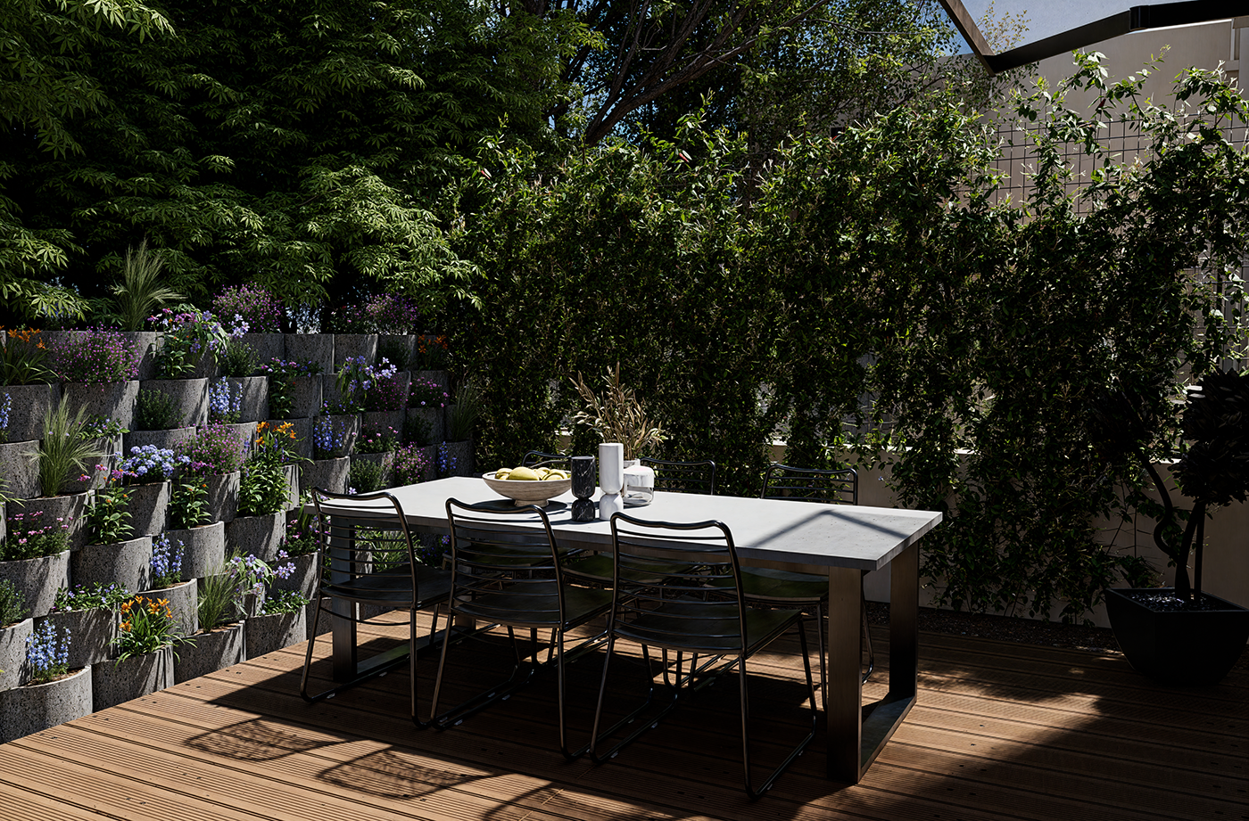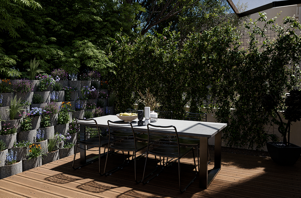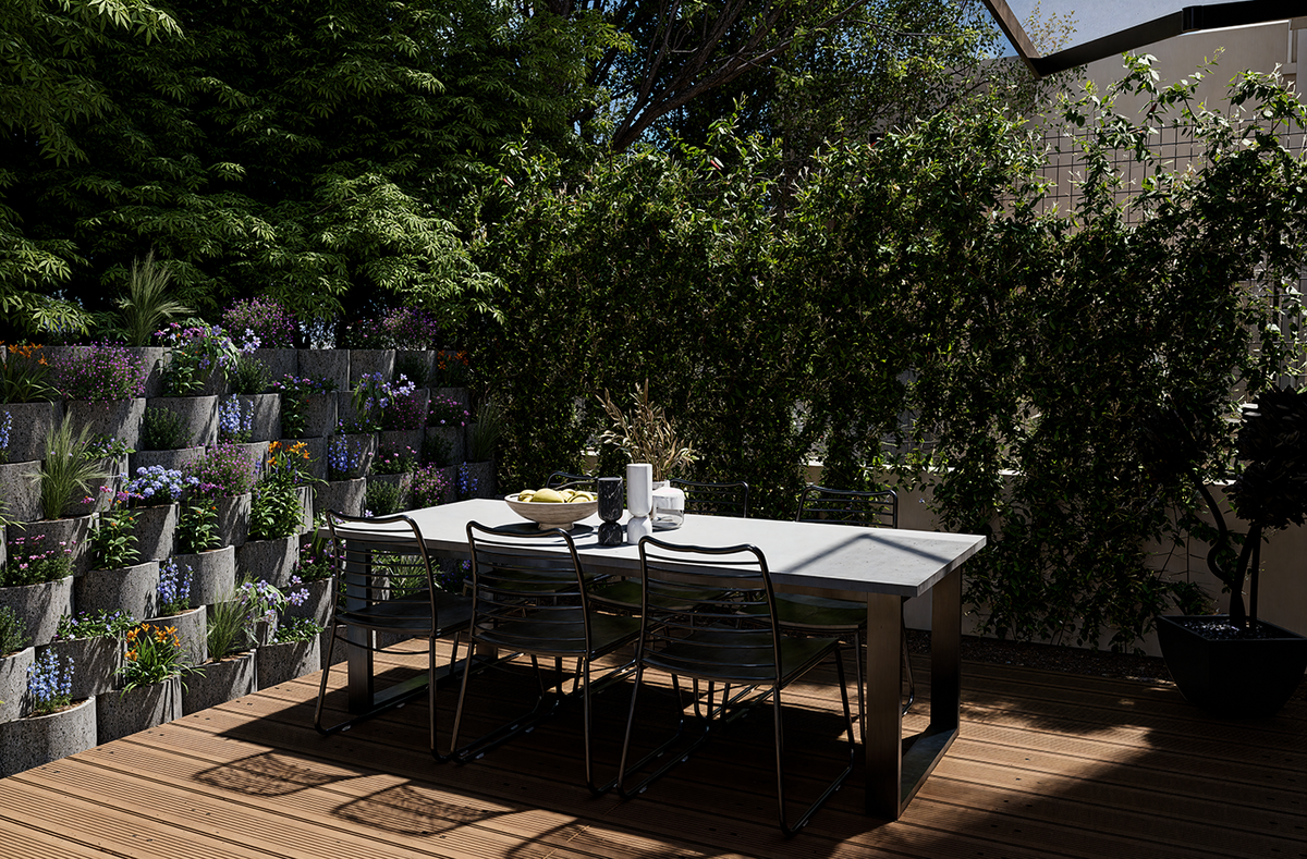 Ce que ça implique : Créer des extérieurs à l’aspect organique mais parfaitement maîtrisé, avec une touche design. L’objectif : un espace à la fois apaisant, chic et chaleureux.