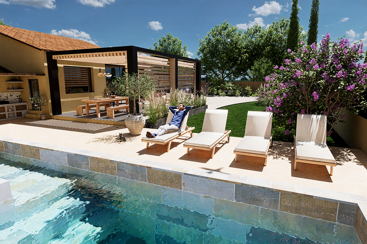 Grâce à la 3D, je peux représenter avec précision tous les détails de votre projet piscine :