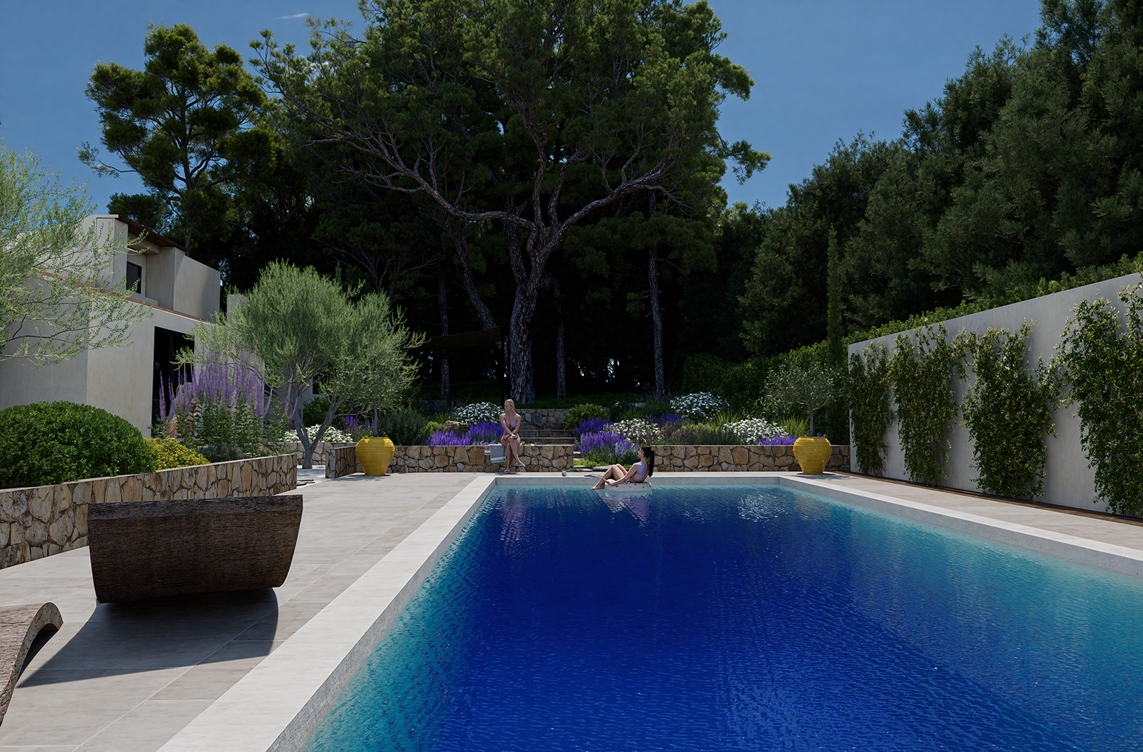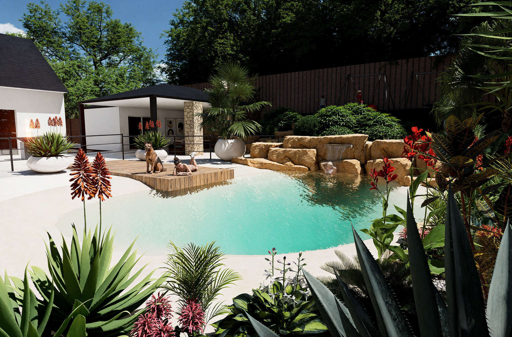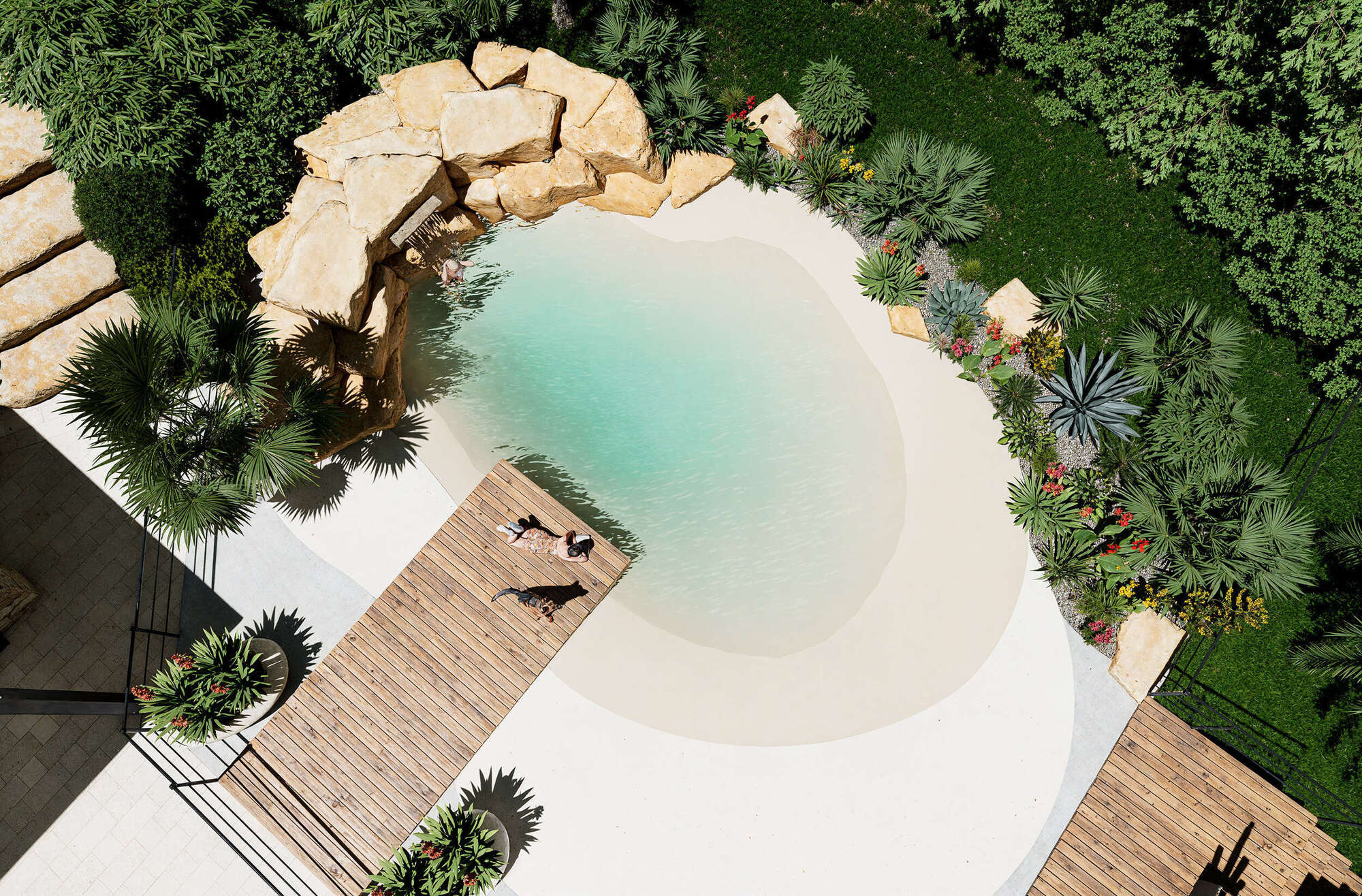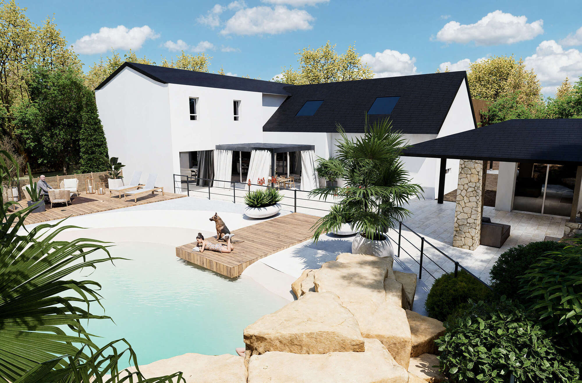 Votre client visualise son futur lagon comme s’il y était déjà, entouré de verdure et de minéral.