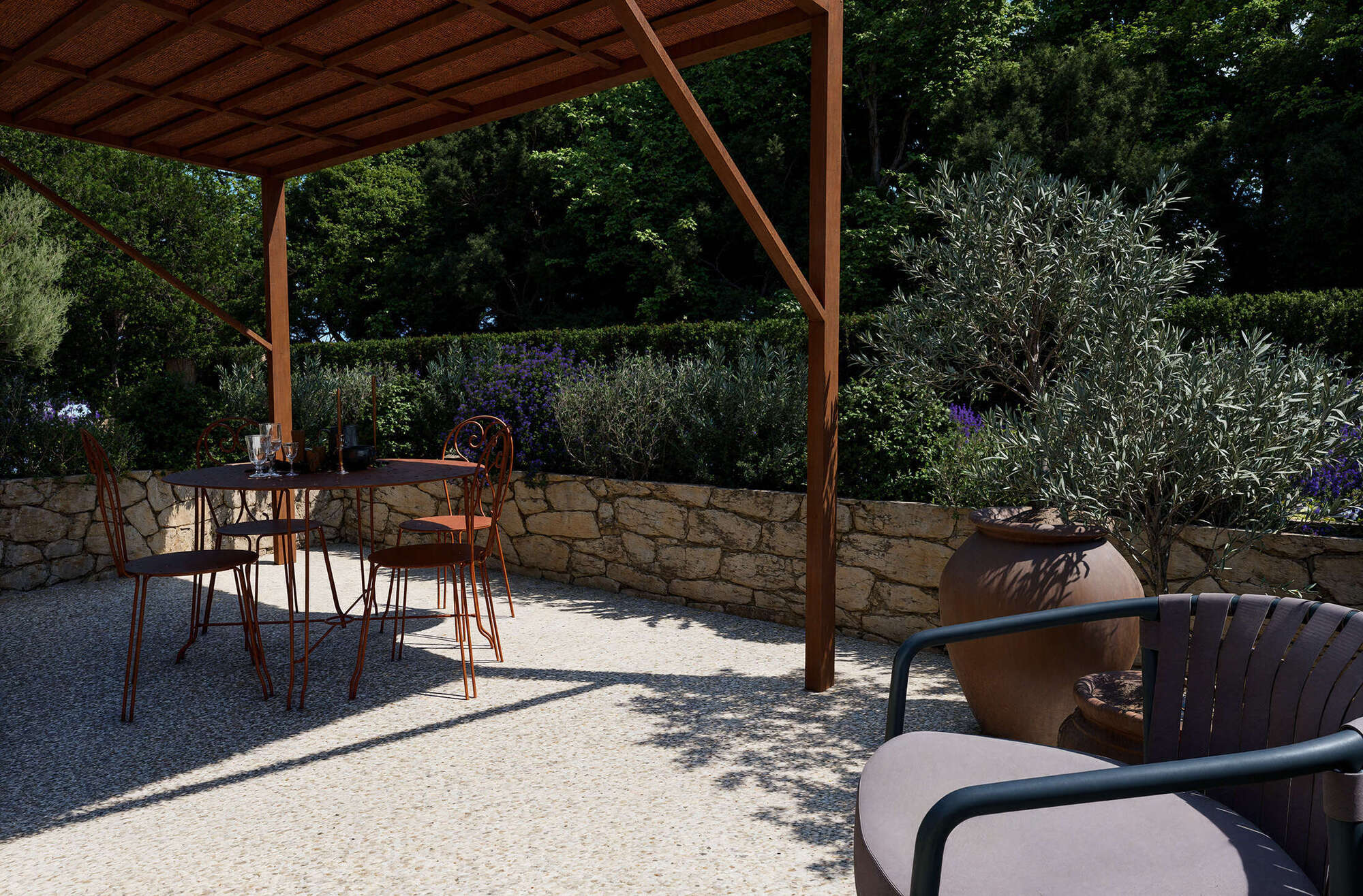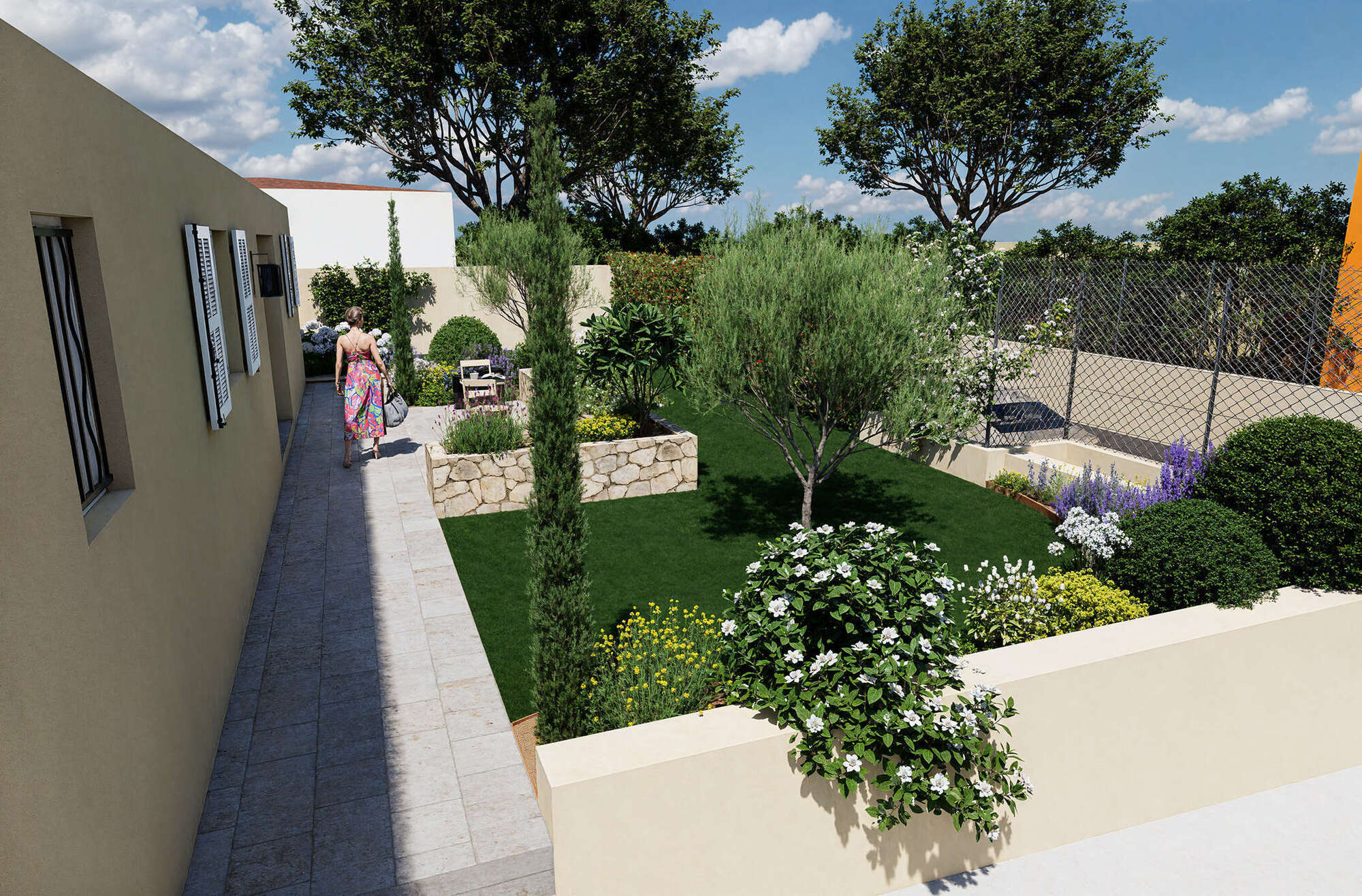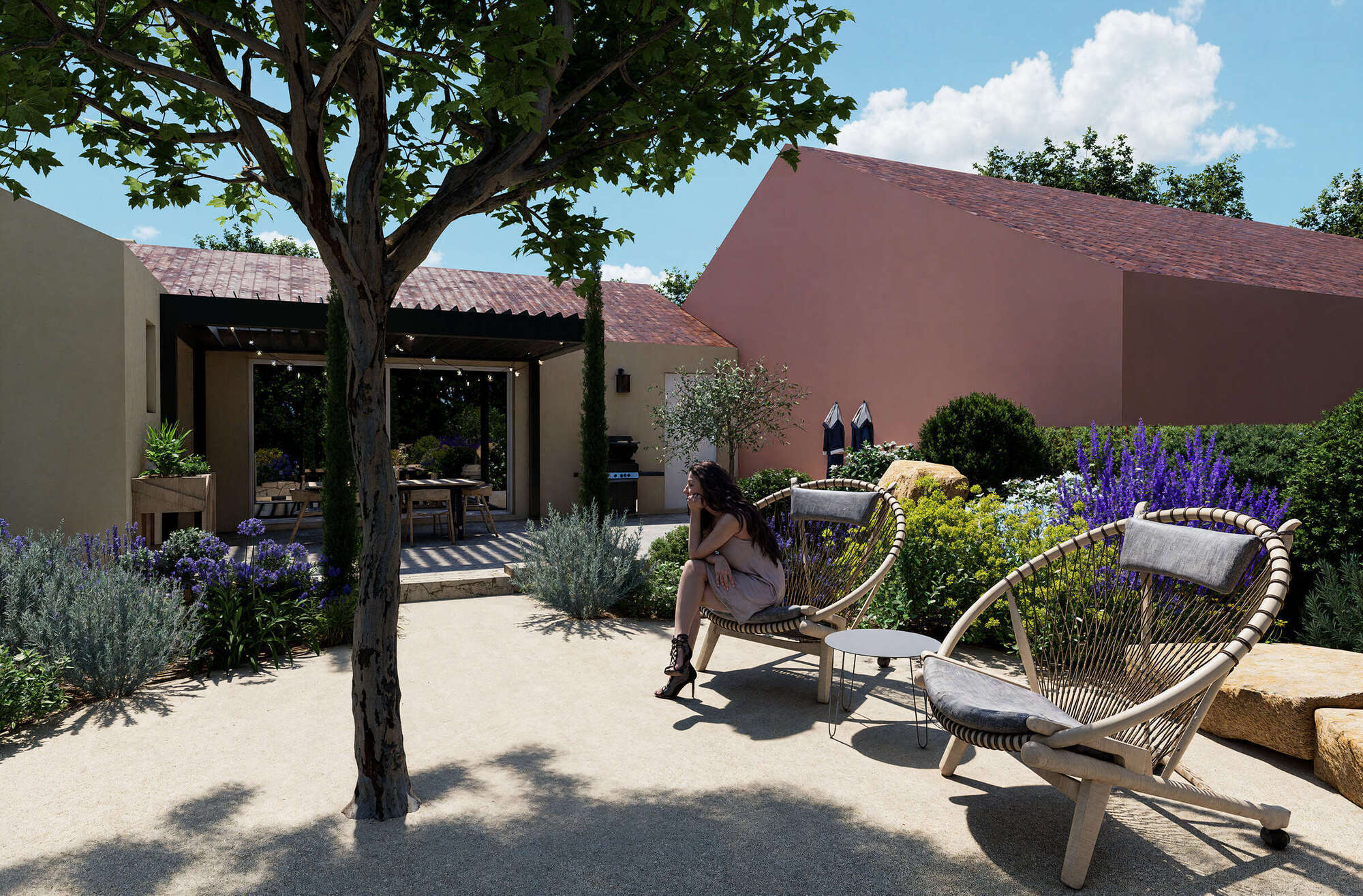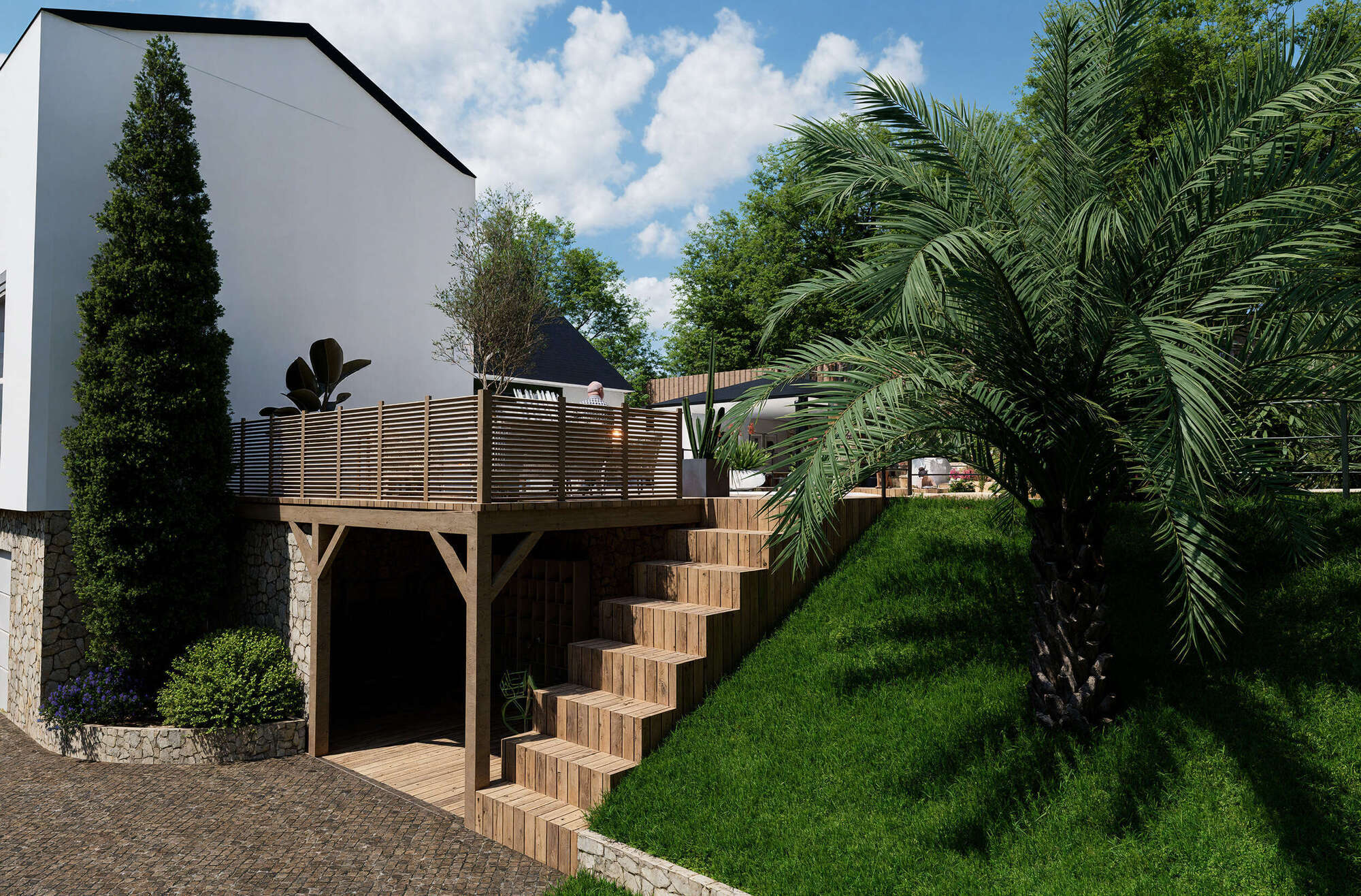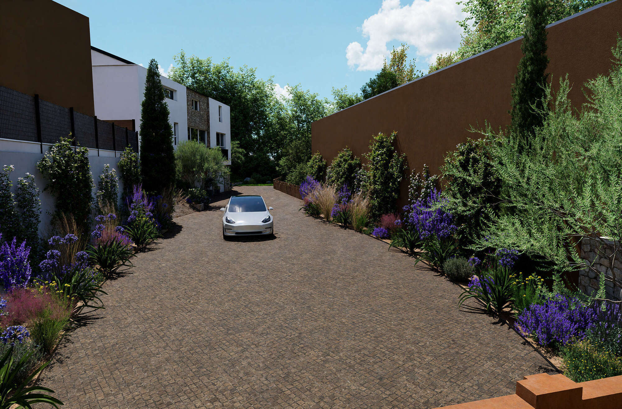 Un aménagement extérieur harmonieux avec la création d’une entrée soignée et d’un coin intime. Un espace à la fois accueillant et préservé, propice à la détente et à la convivialité