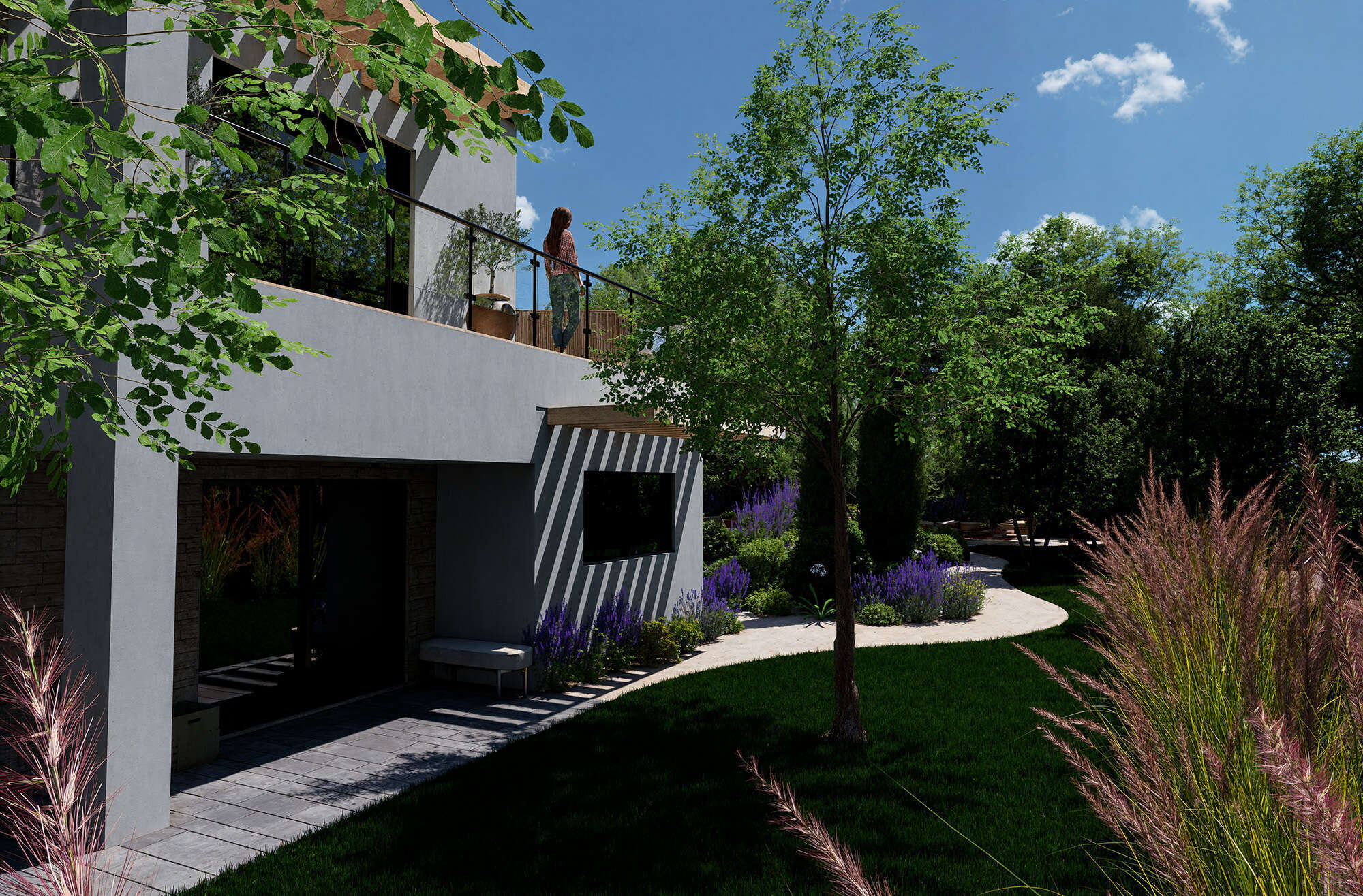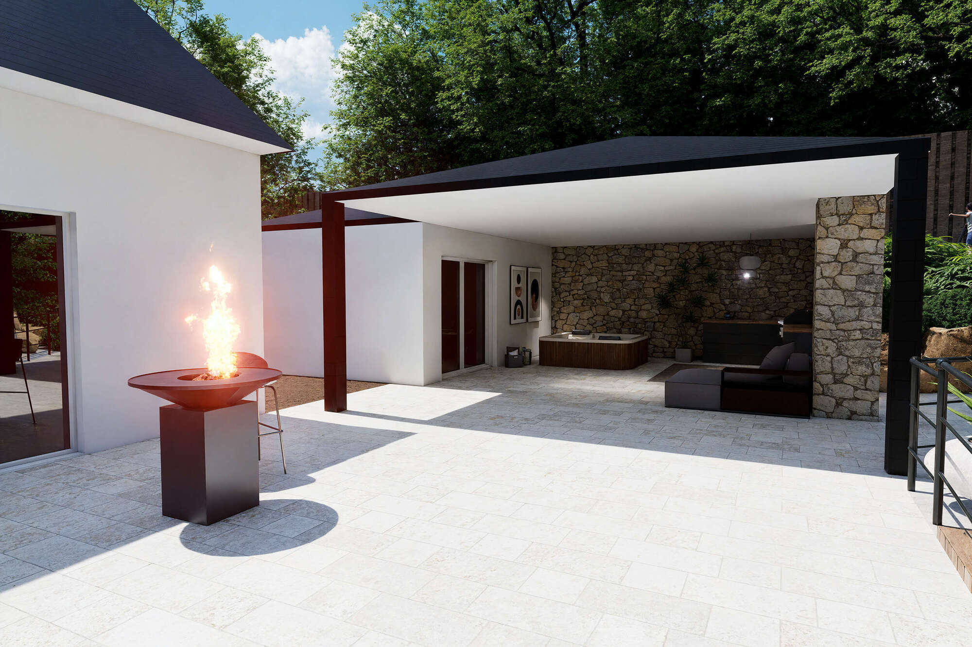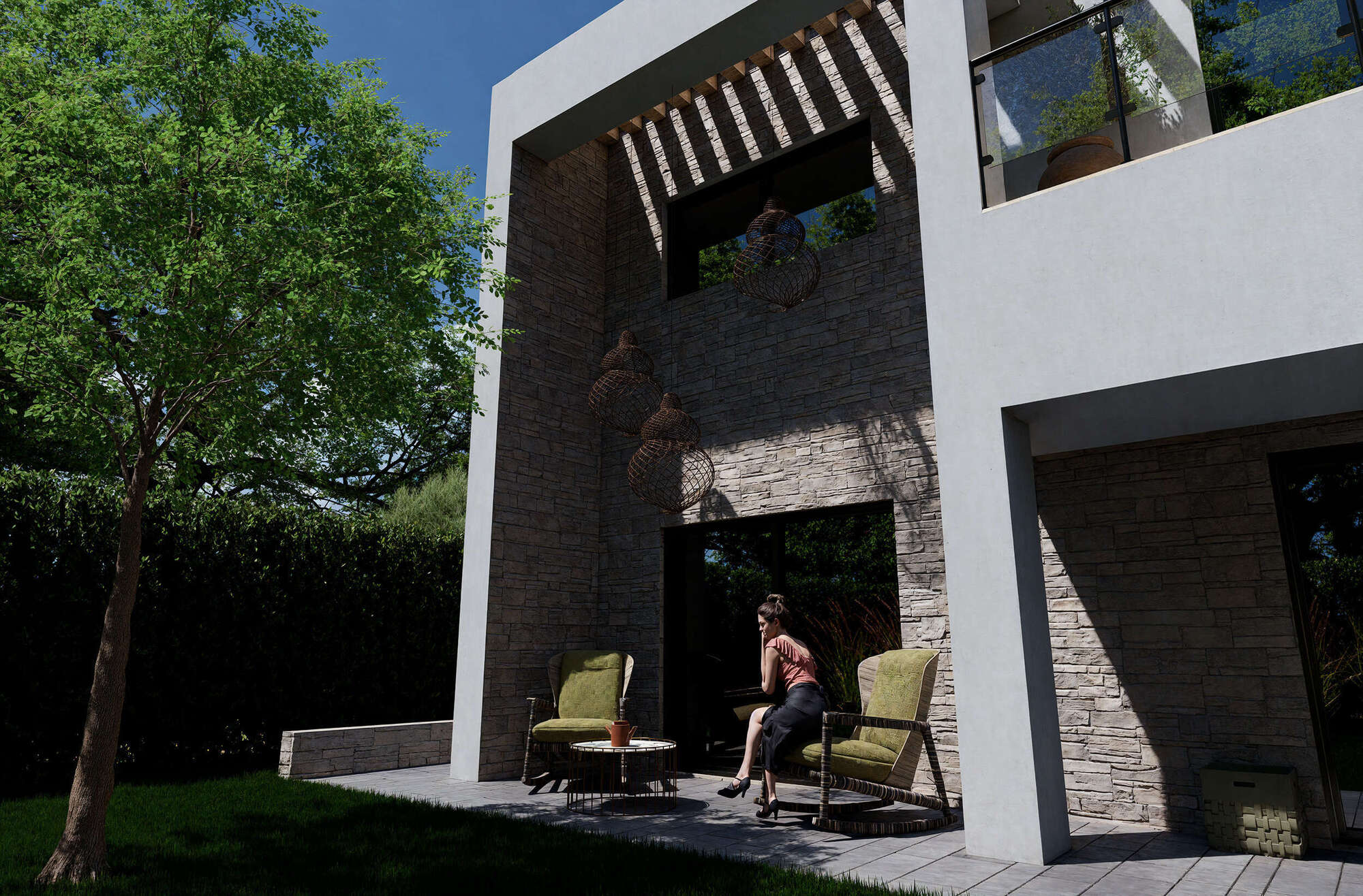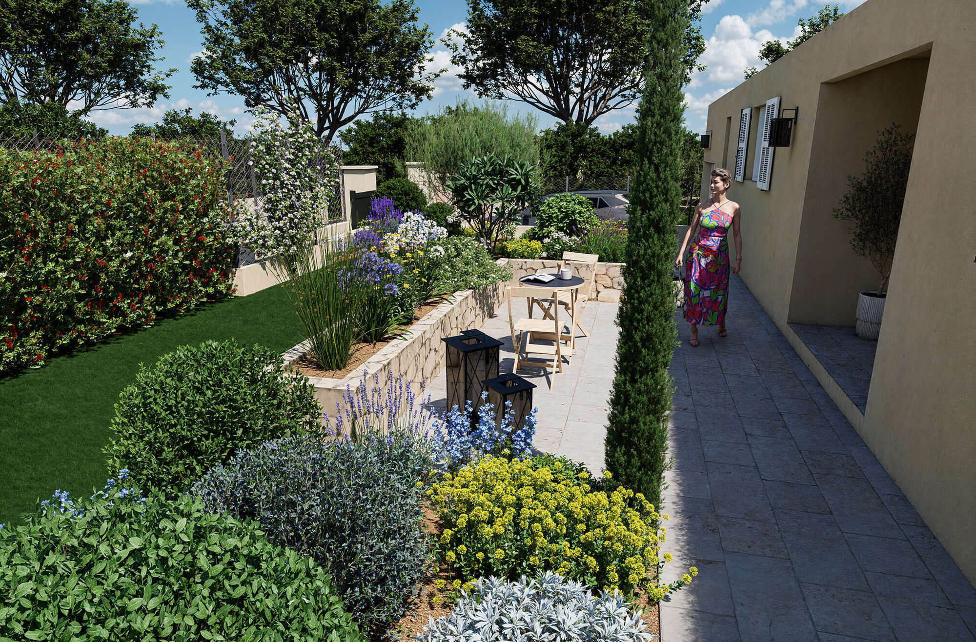 Un aménagement extérieur harmonieux avec la création d’une entrée soignée et d’un coin intime. Un espace à la fois accueillant et préservé, propice à la détente et à la convivialité