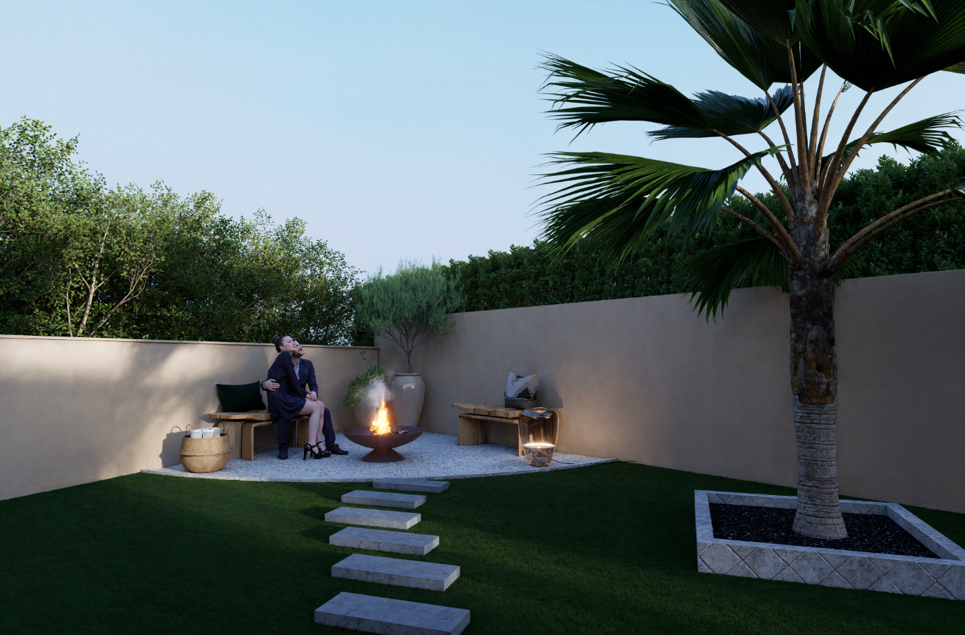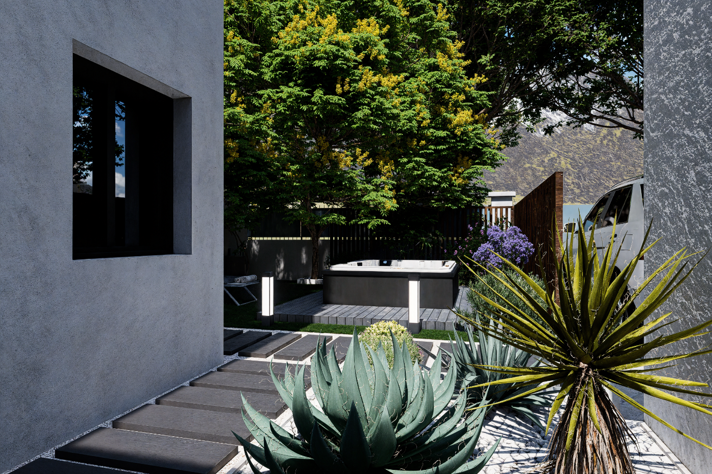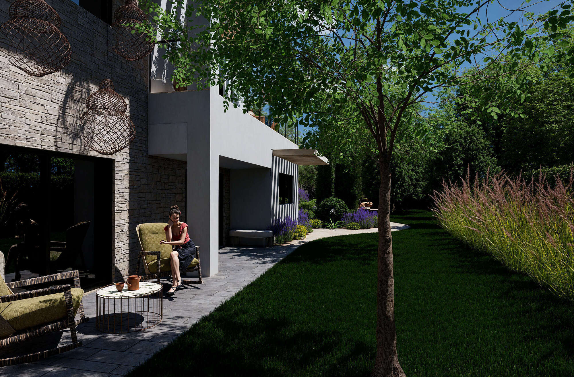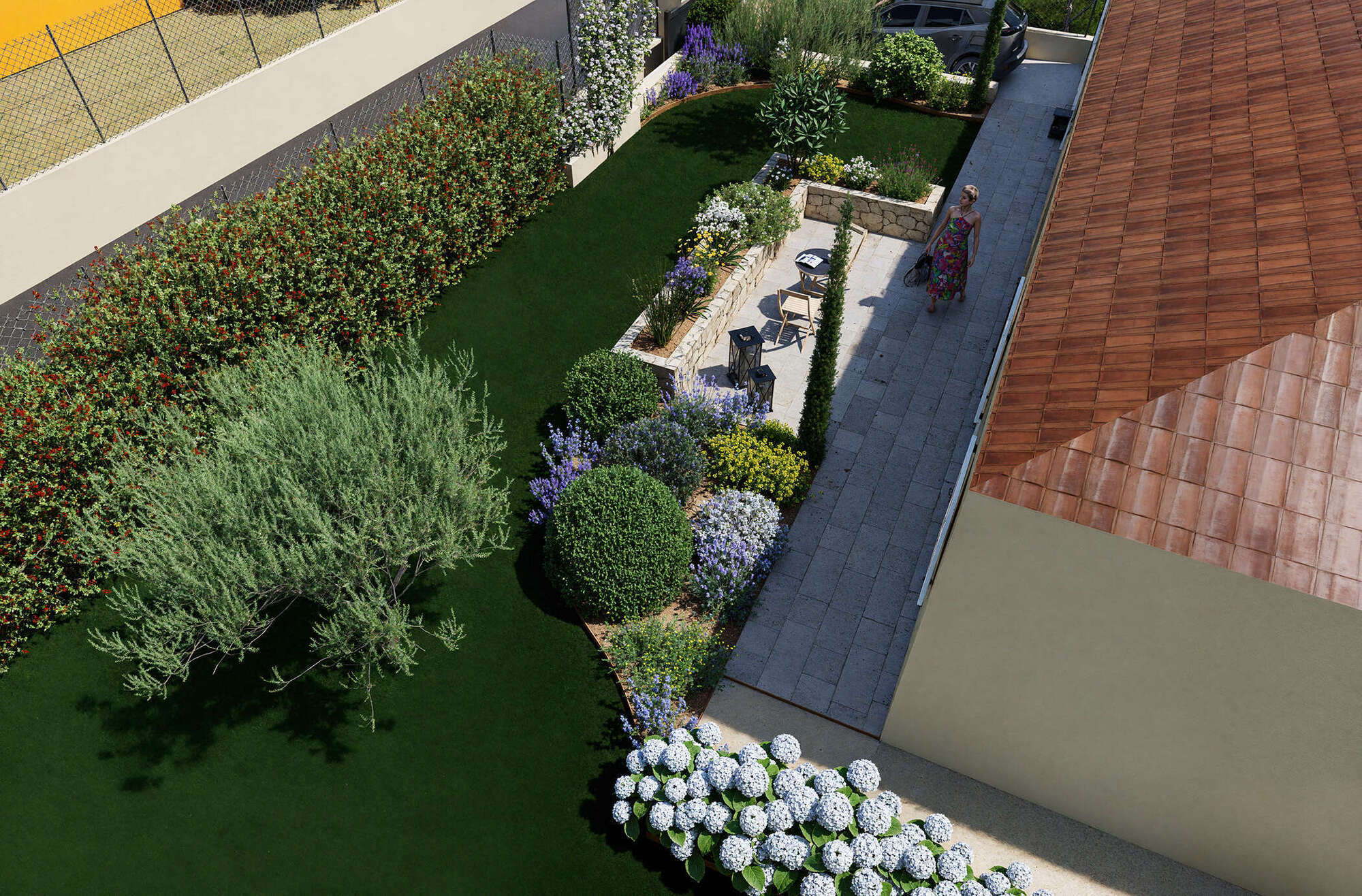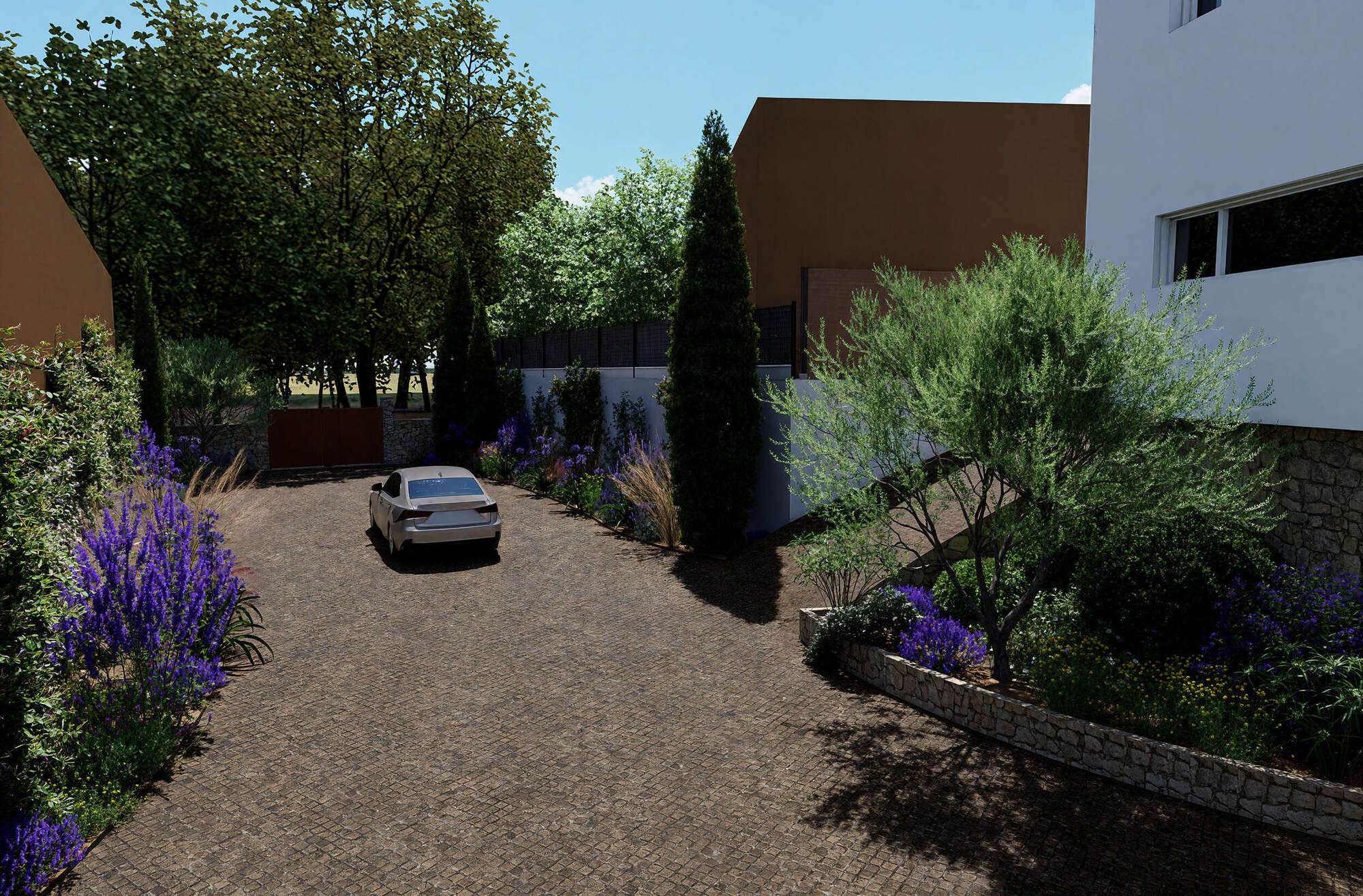 Un aménagement extérieur harmonieux avec la création d’une entrée soignée et d’un coin intime. Un espace à la fois accueillant et préservé, propice à la détente et à la convivialité