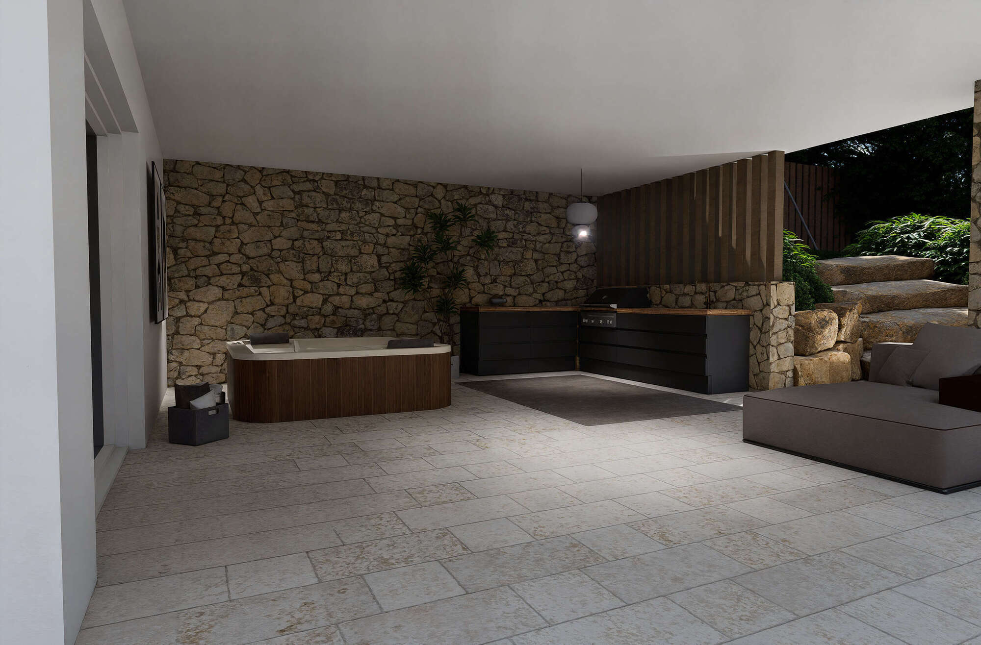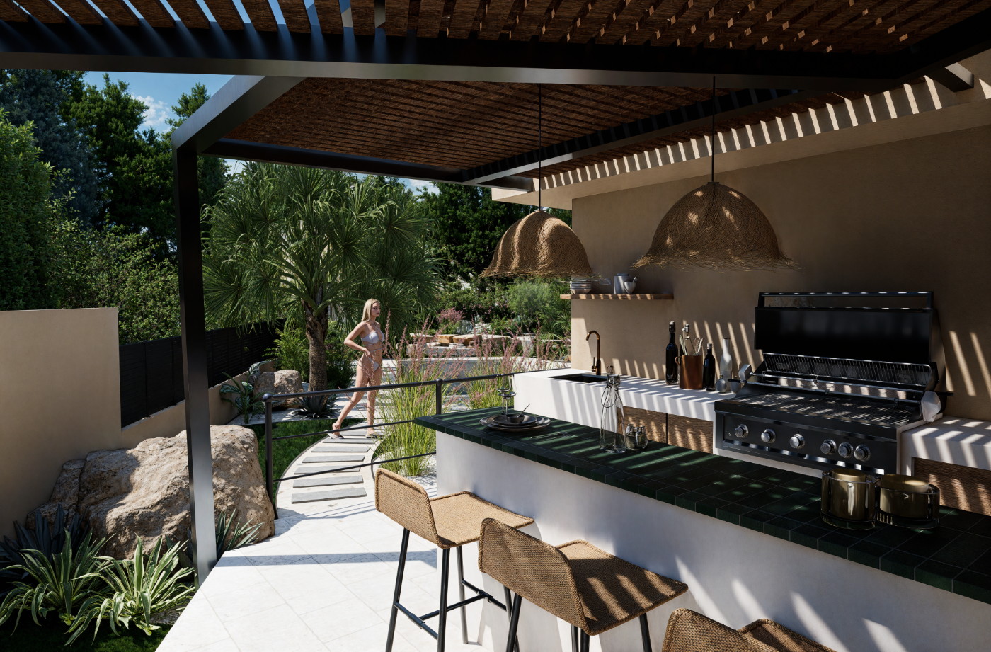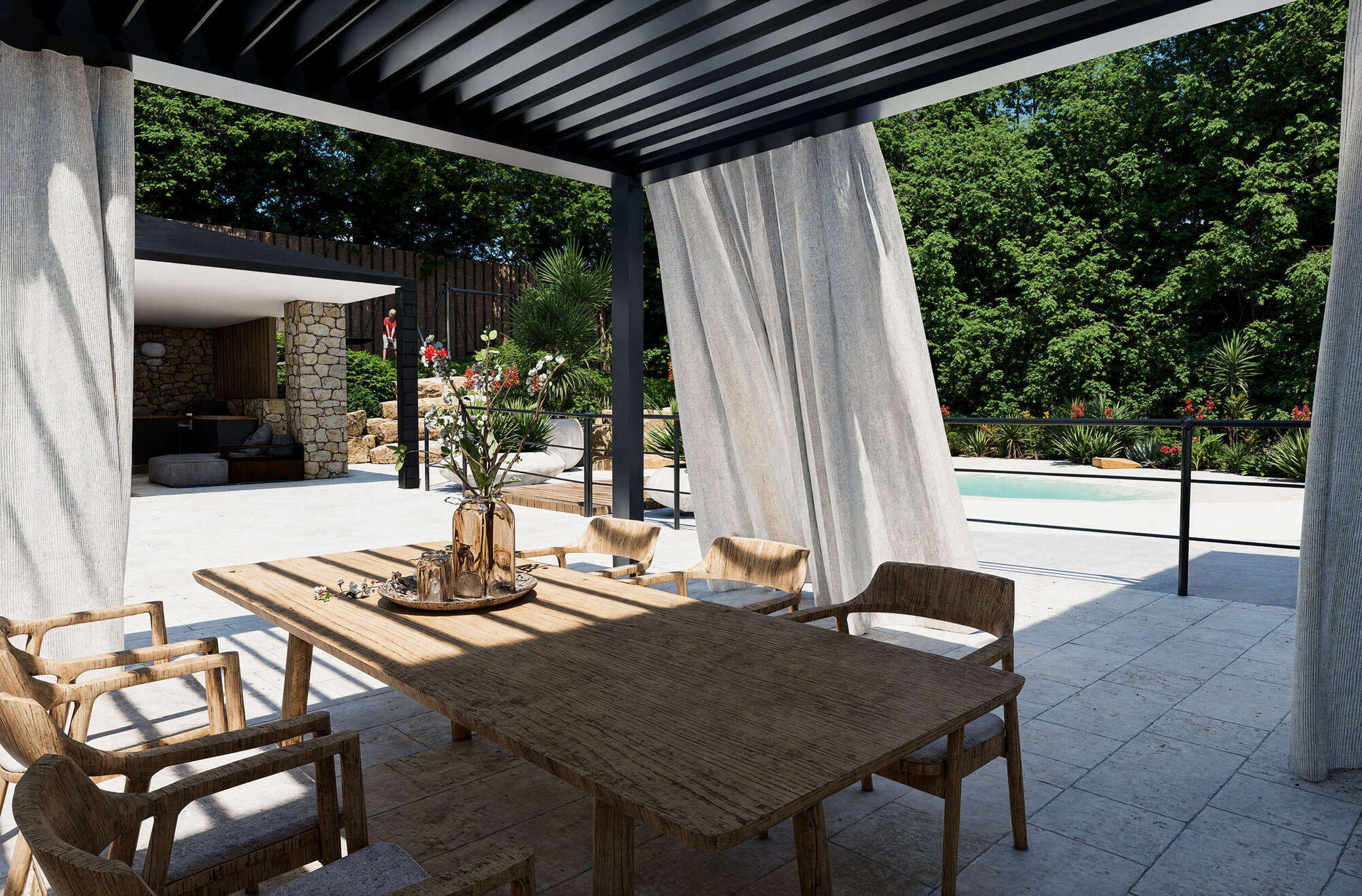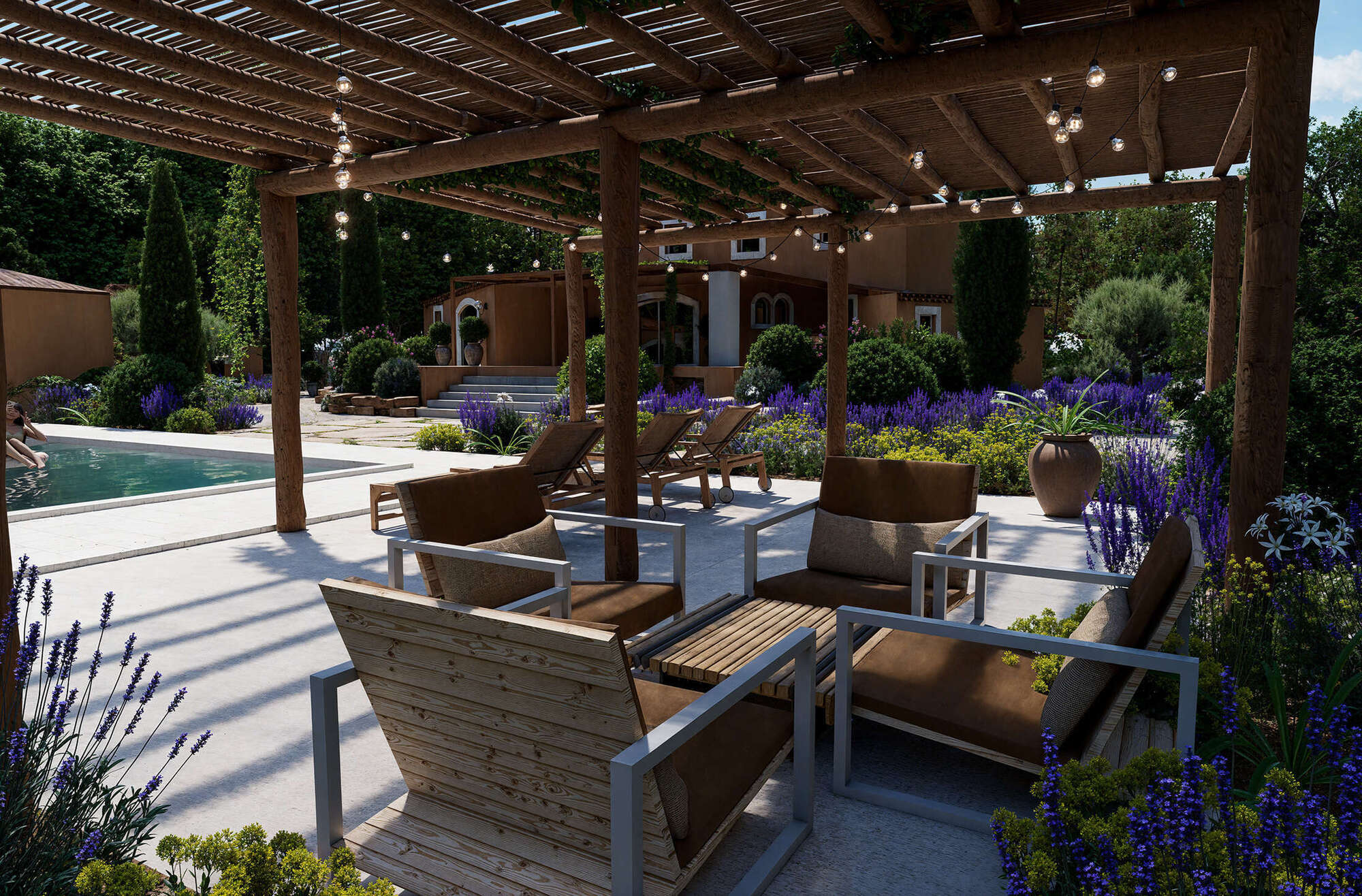 Aménagement extérieur d'une maison, création d'une pergola, piscine et cuisine extérieur