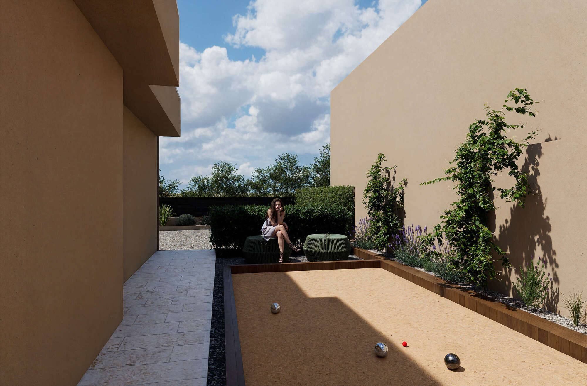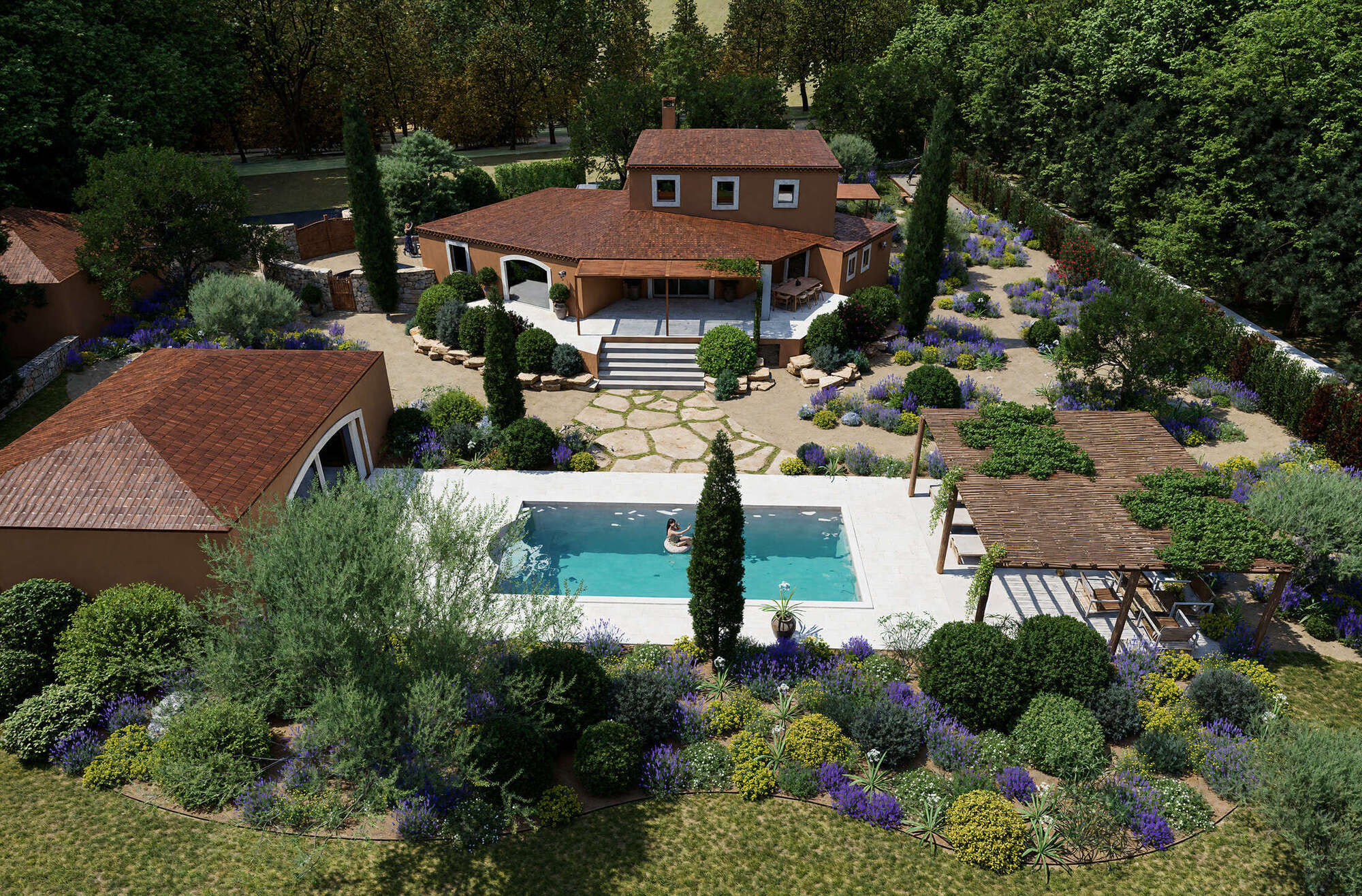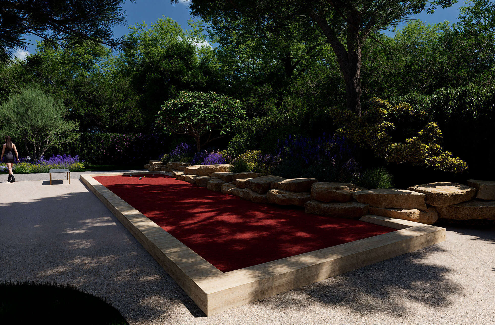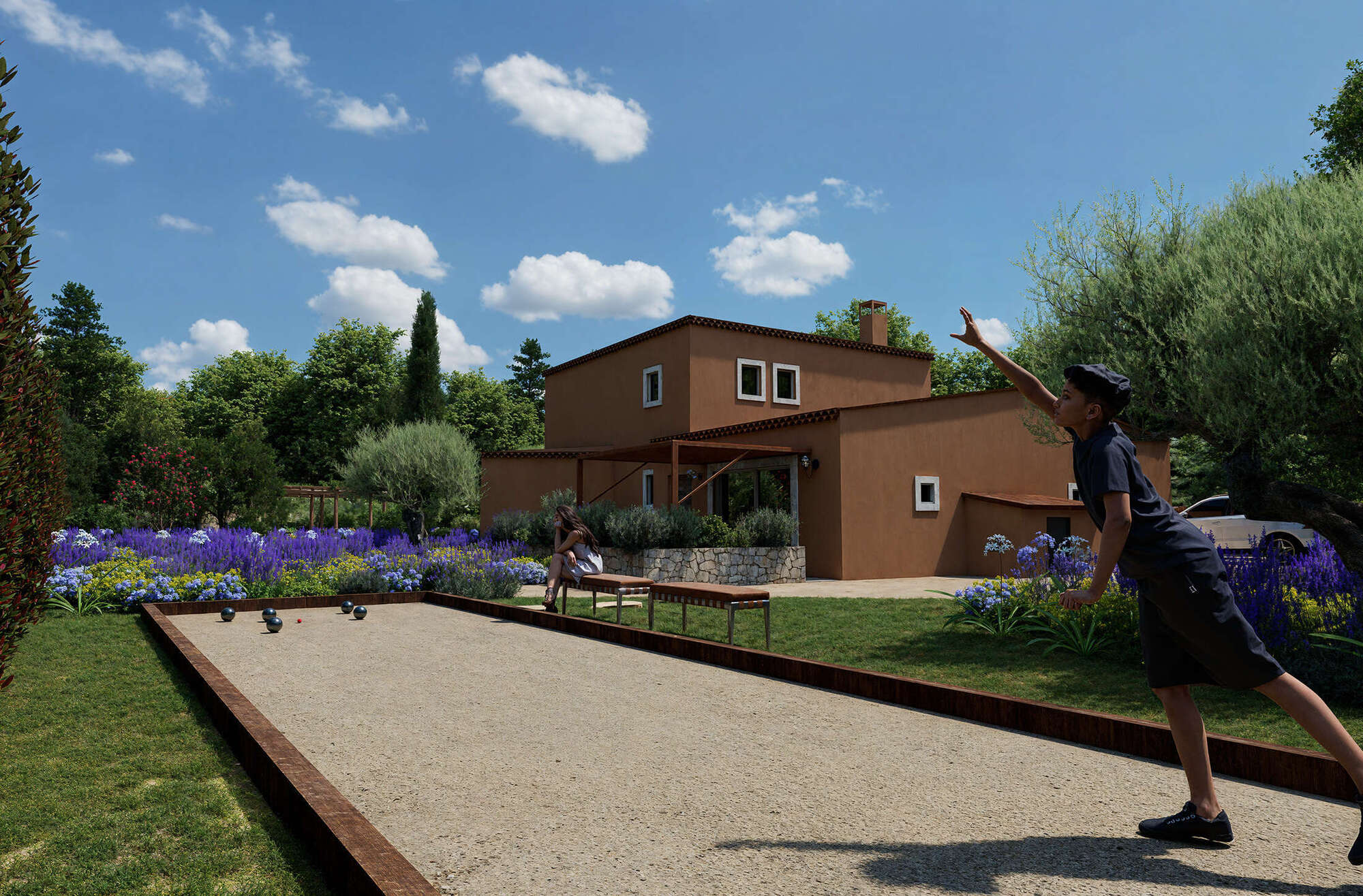 Piscine, restanques en pierre et terrain de pétanque. Un espace de vie convivial et méditerranéen.