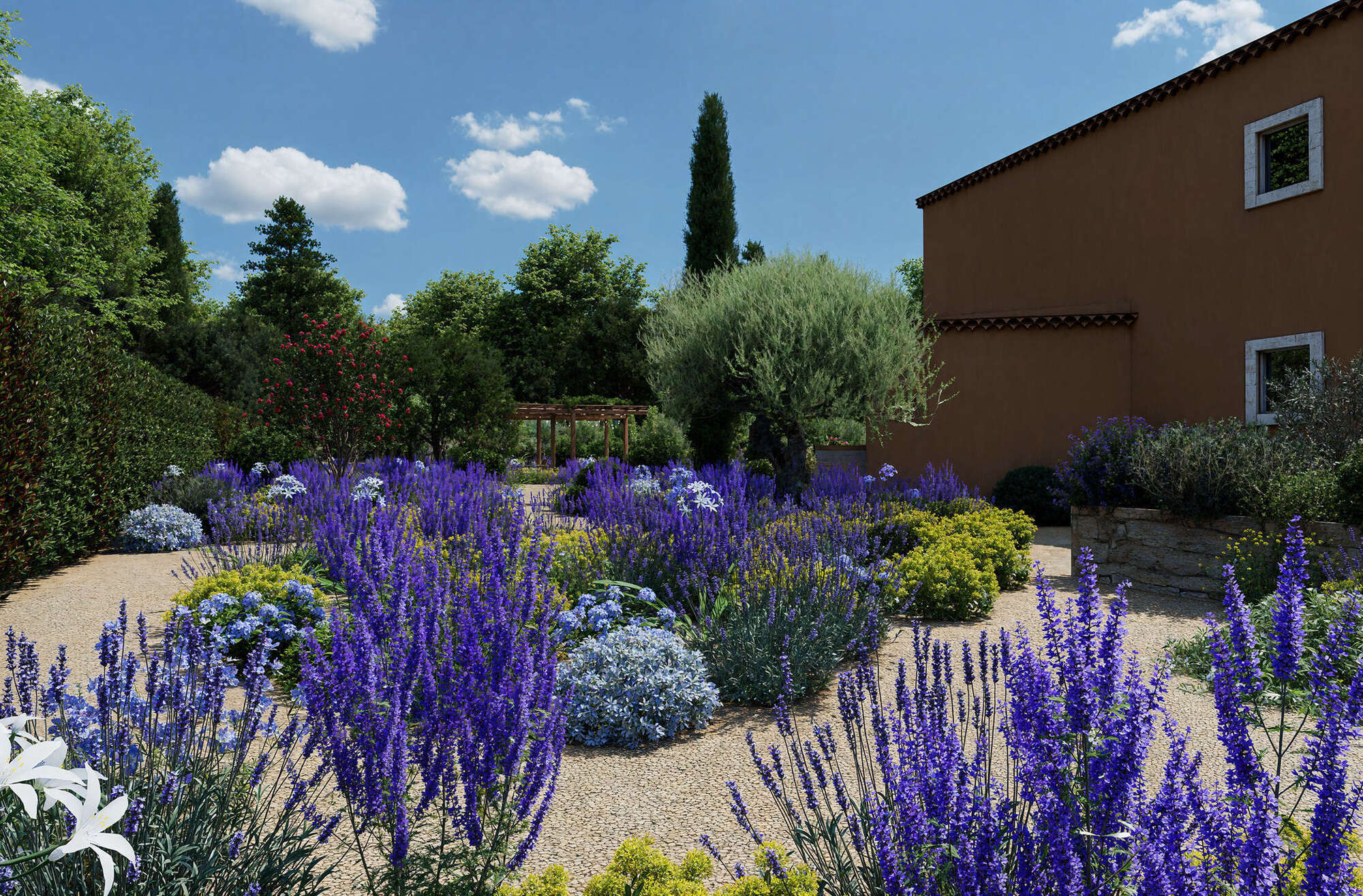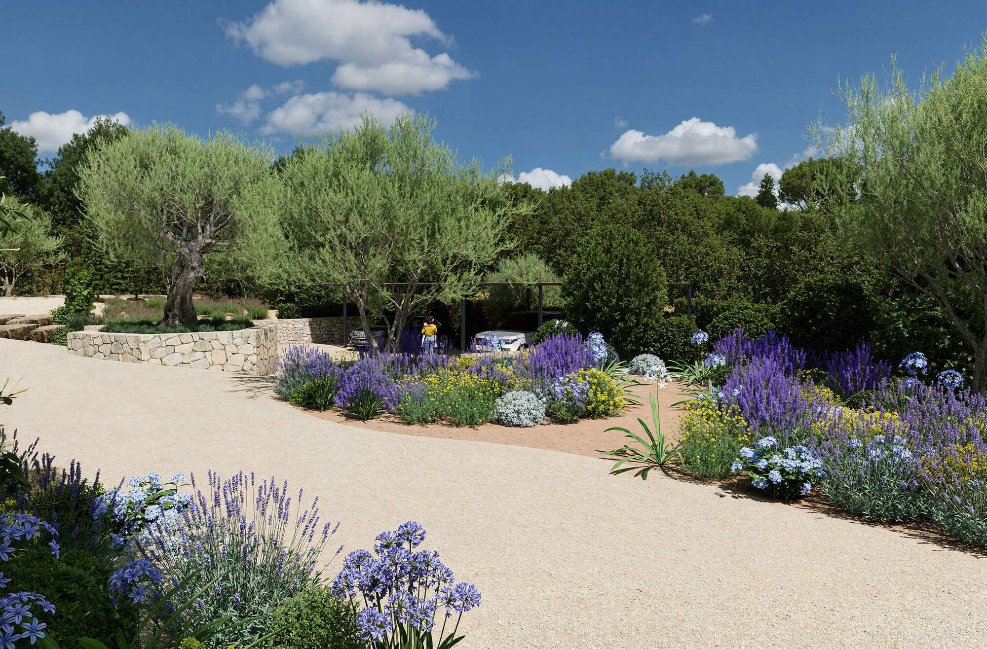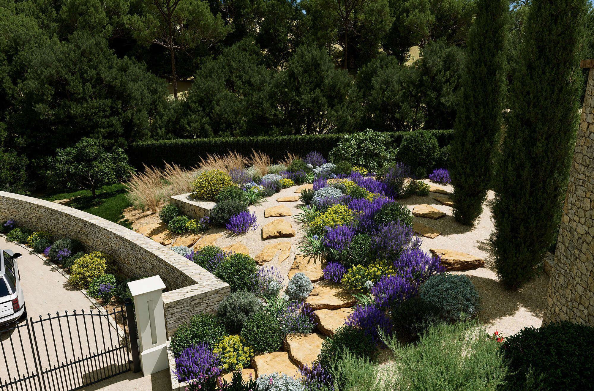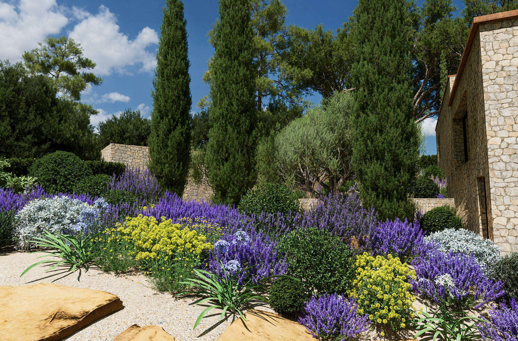 Enrochement, coin potager, champ de lavande et parking. Un cadre naturel, fonctionnel et apaisant.