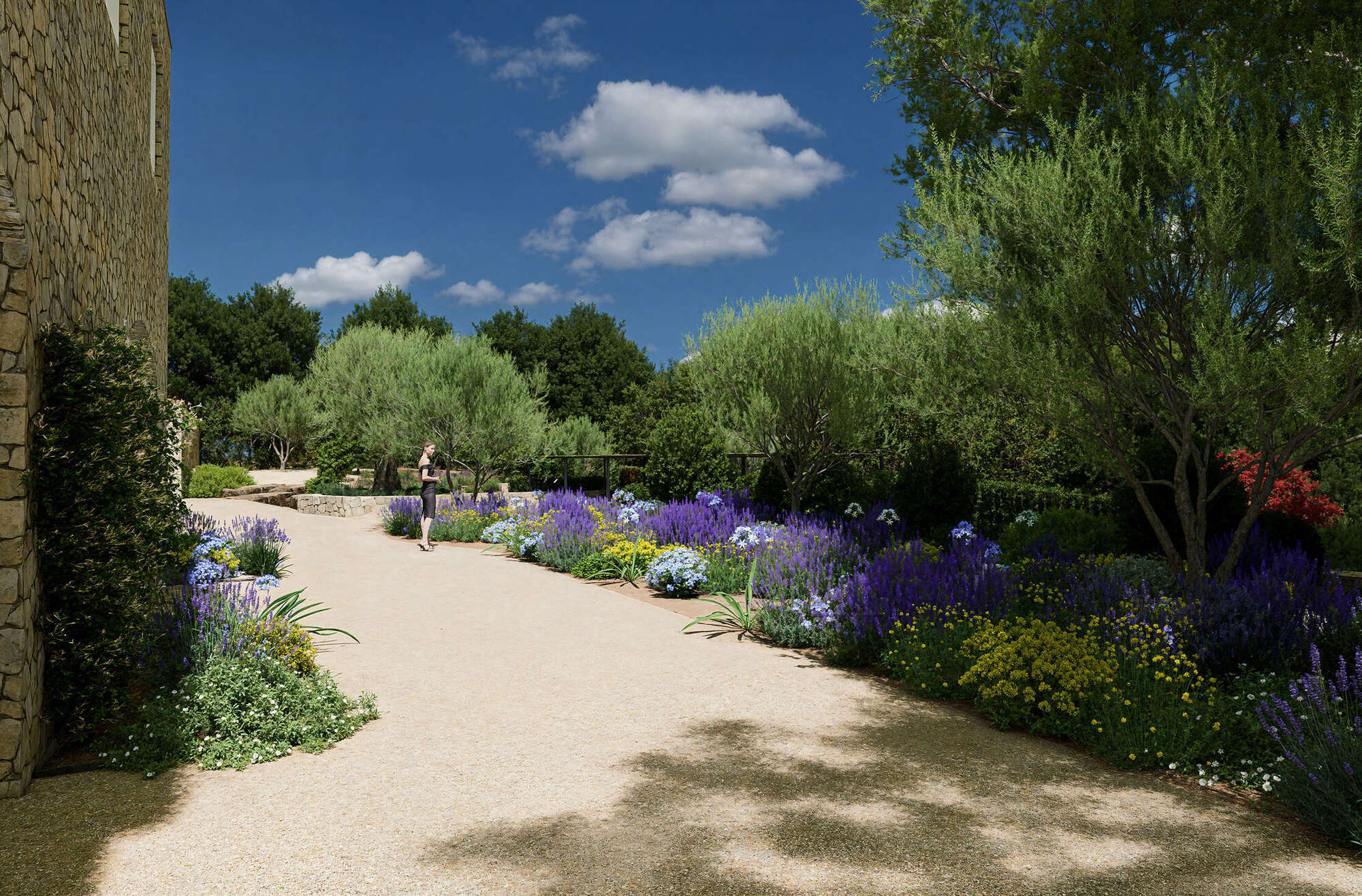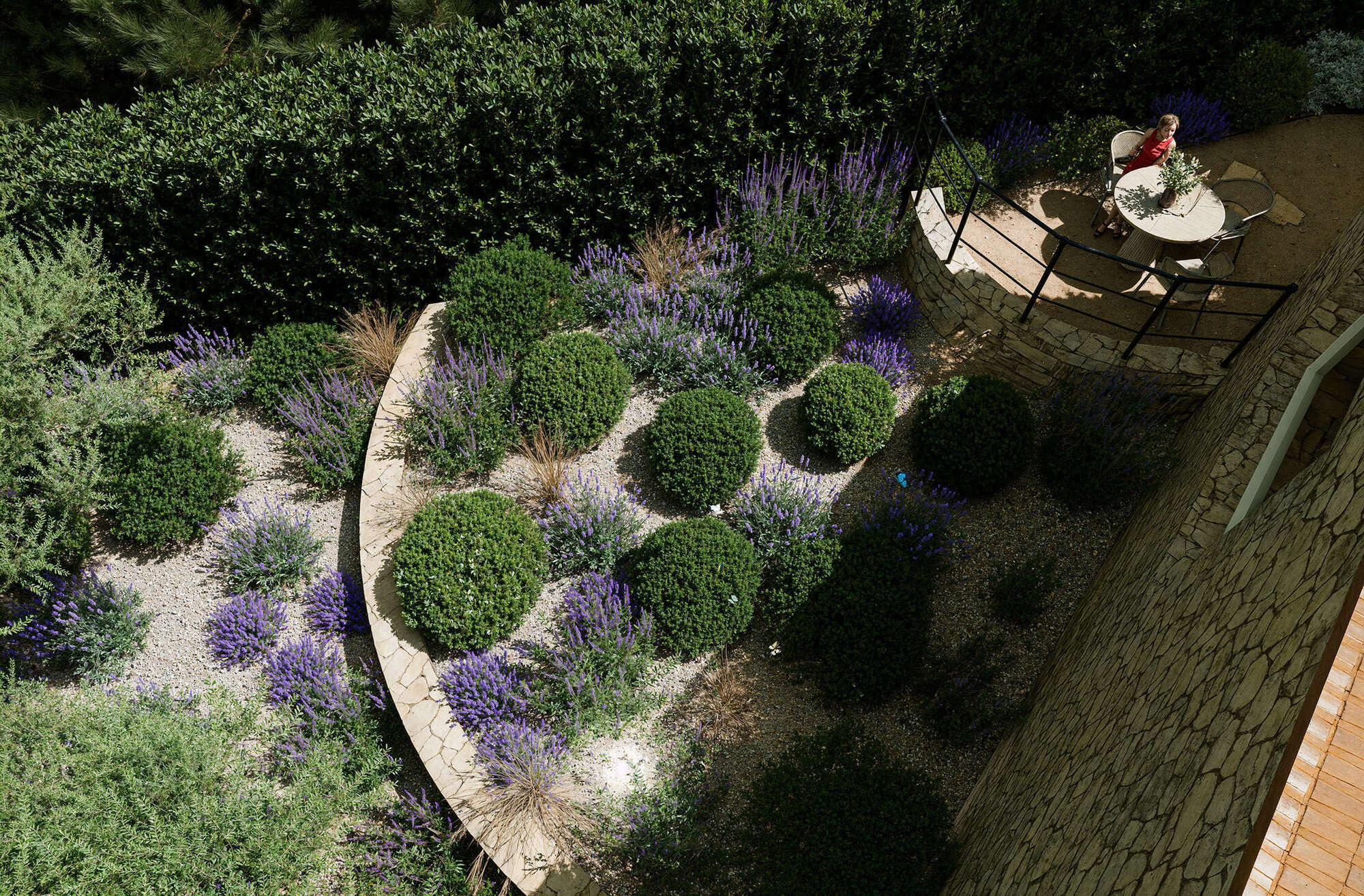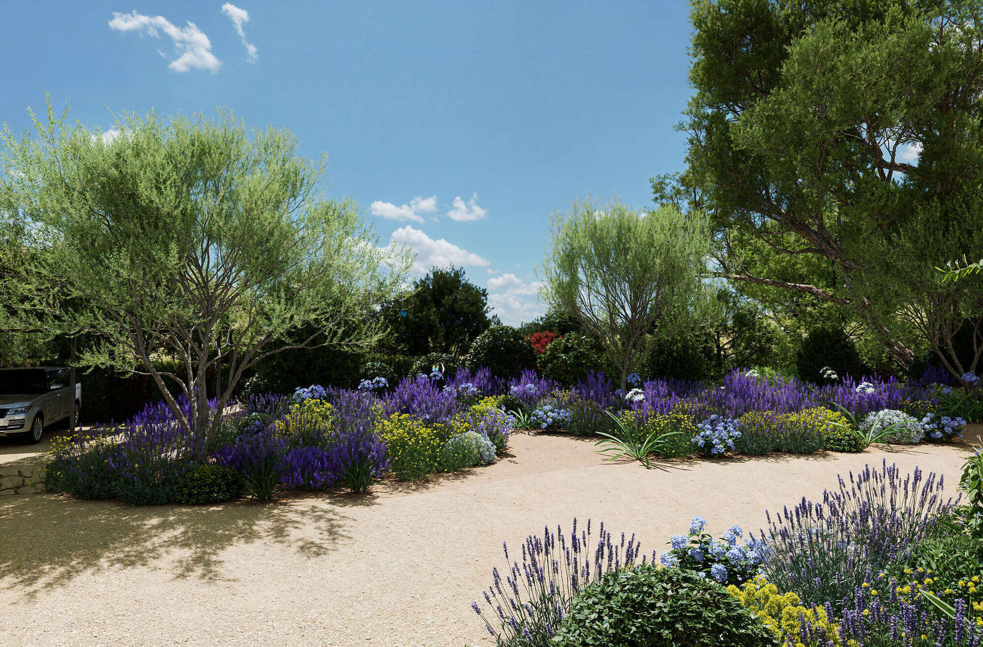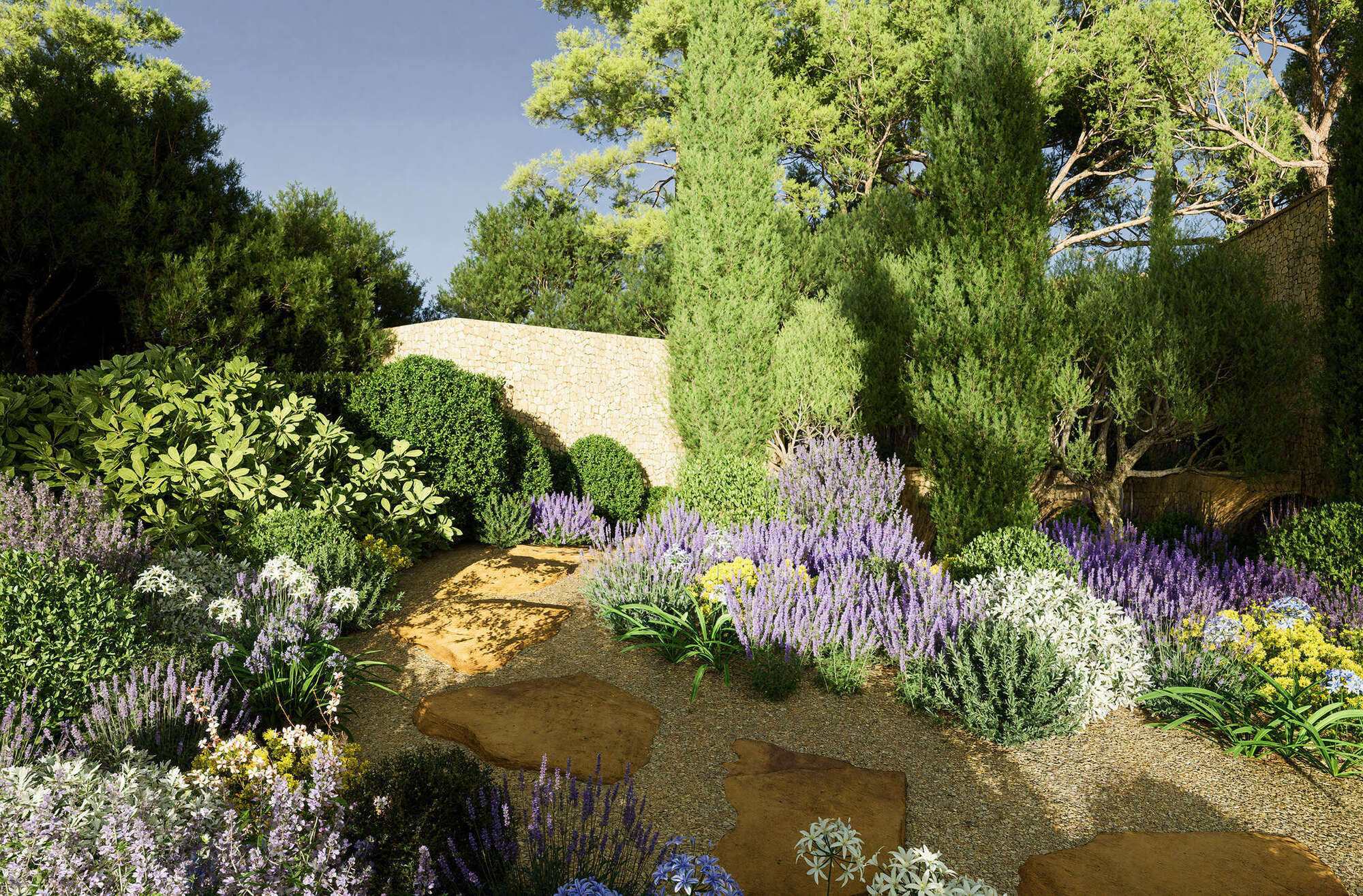 Enrochement, coin potager, champ de lavande et parking. Un cadre naturel, fonctionnel et apaisant.