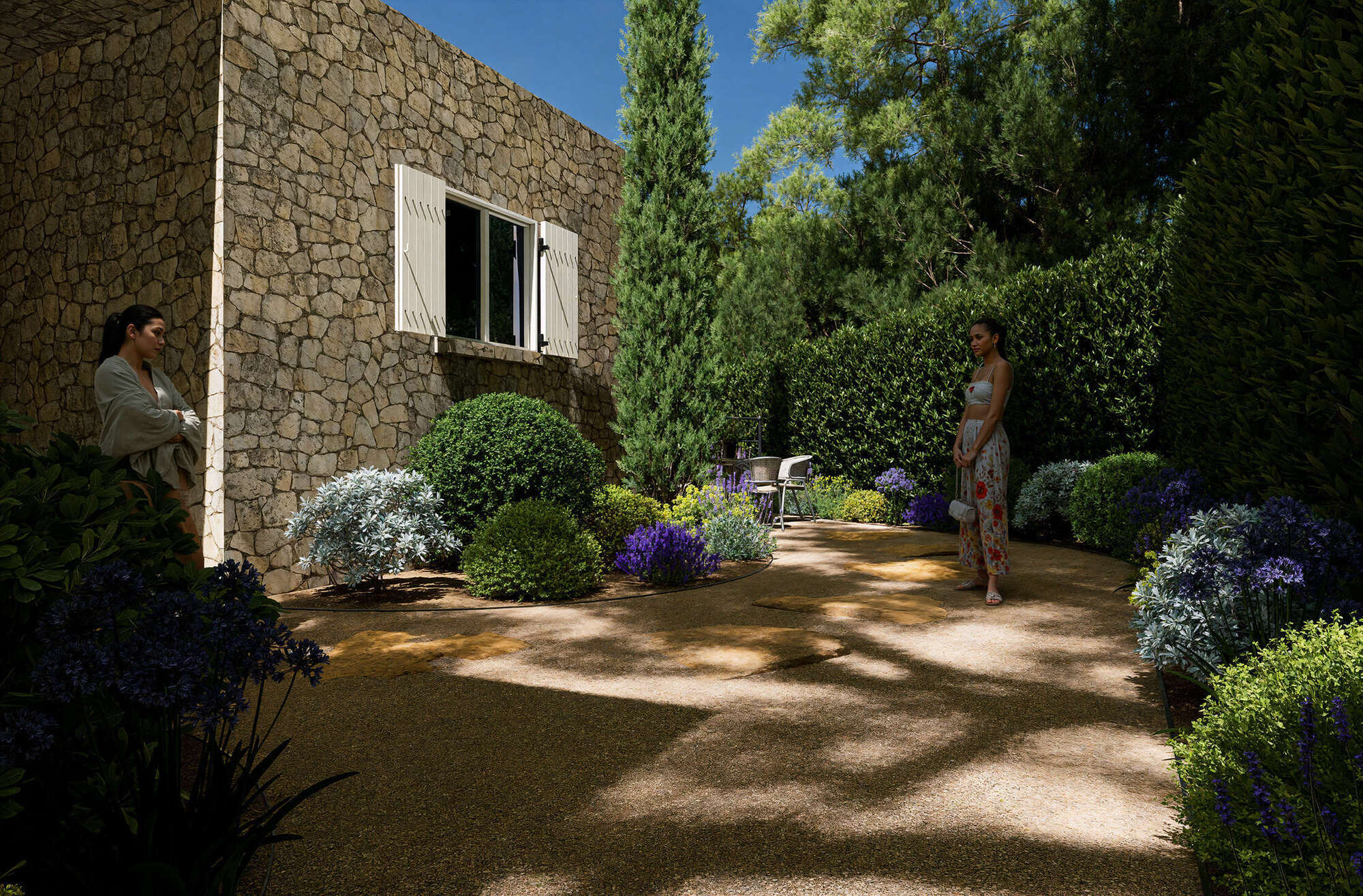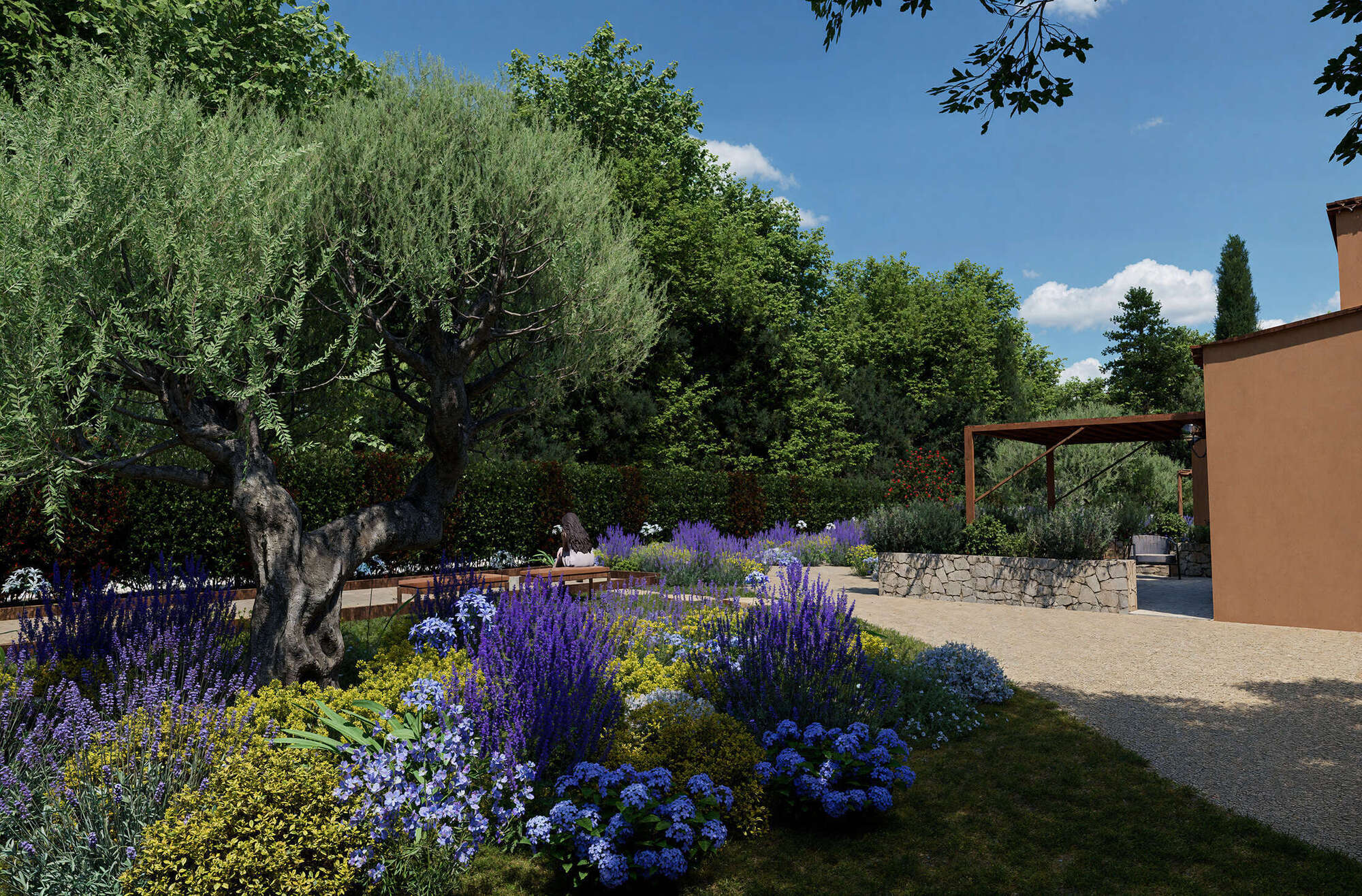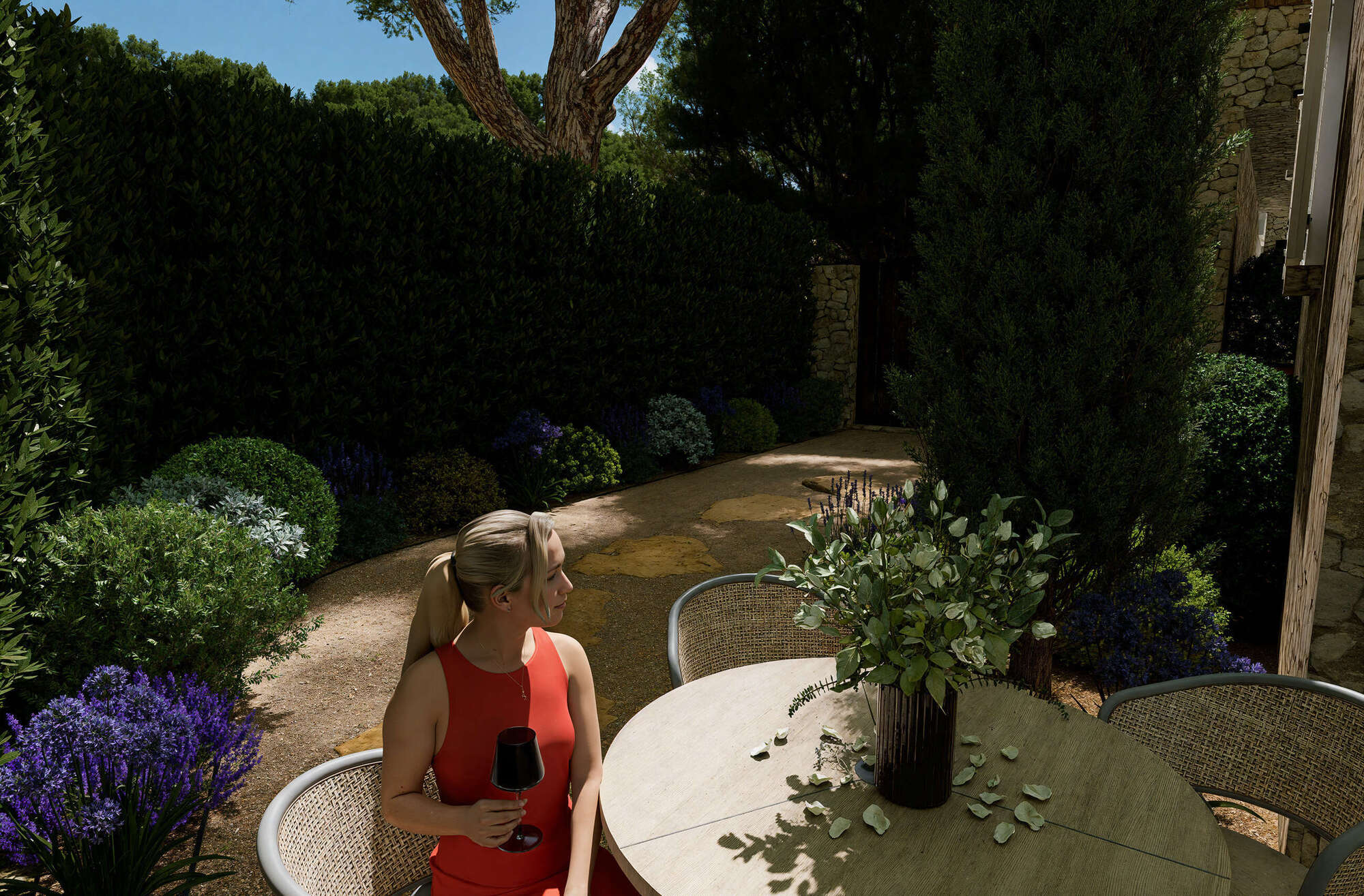 Un jardin méditerranéen authentique associant piscine, terrain de pétanque et oliveraie. Un cadre ensoleillé qui allie charme, convivialité et esprit de vacances toute l’année