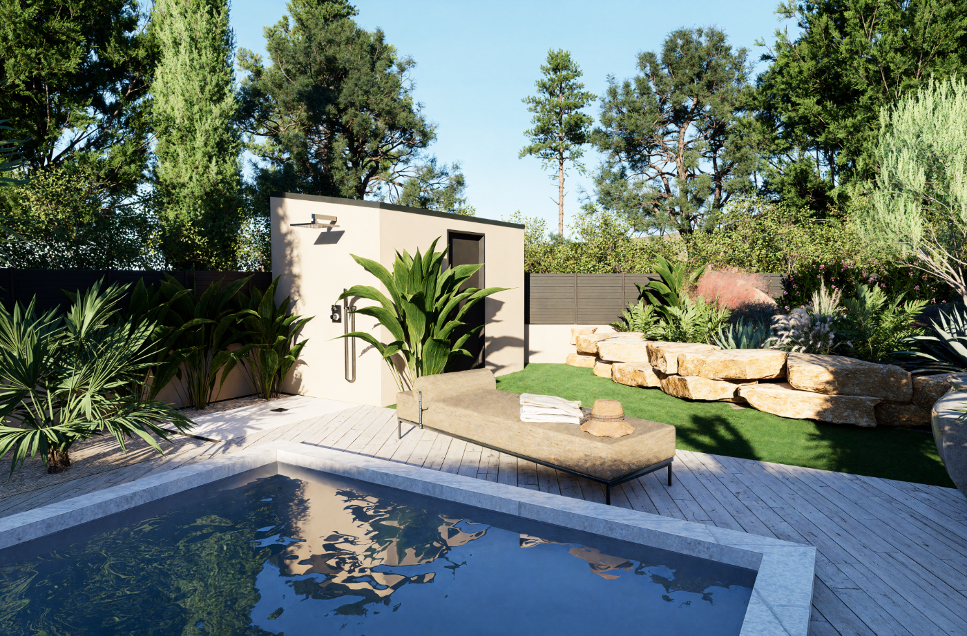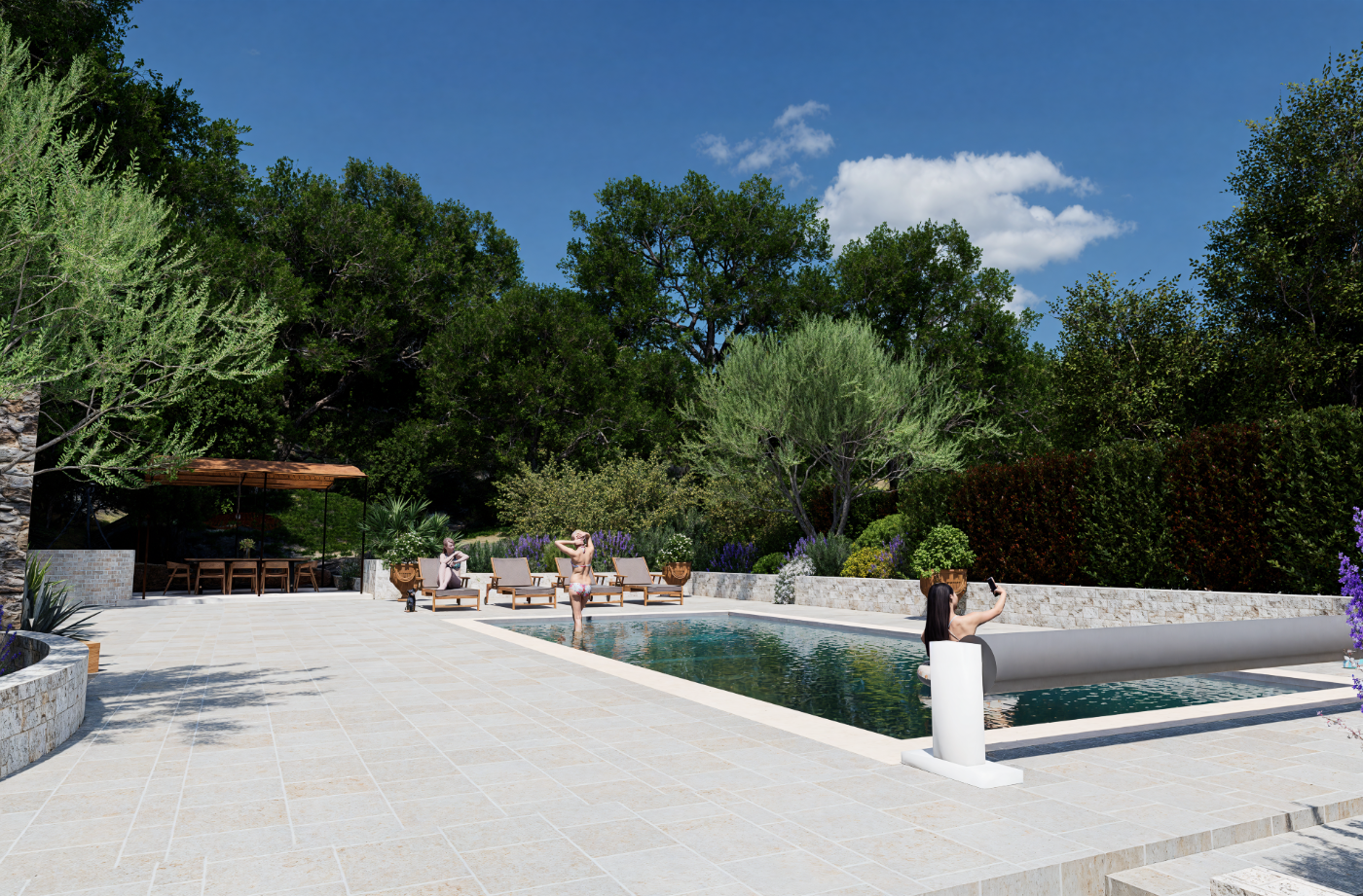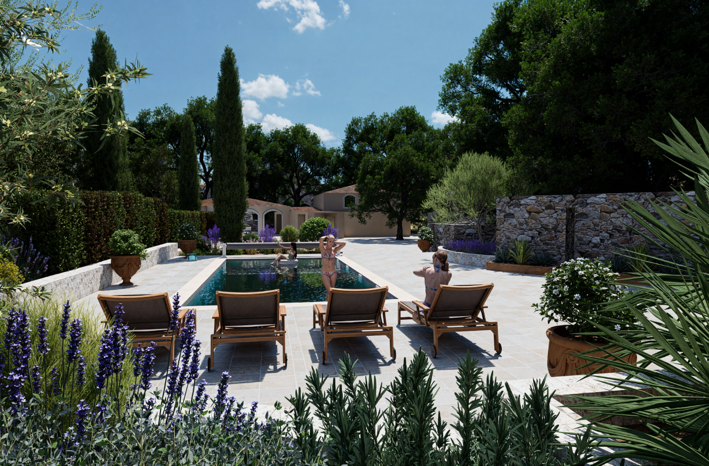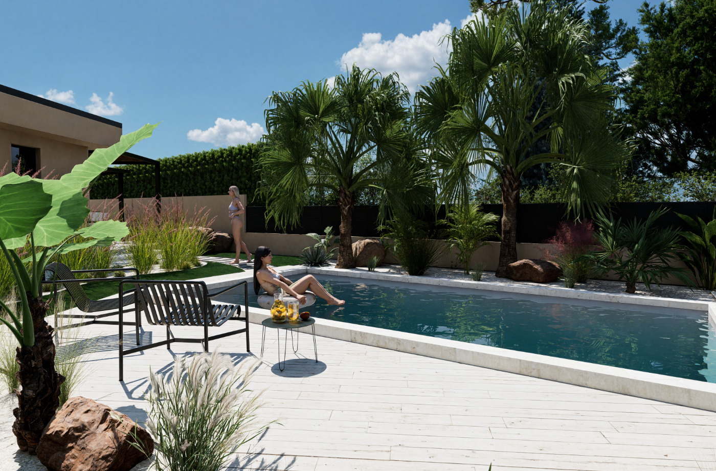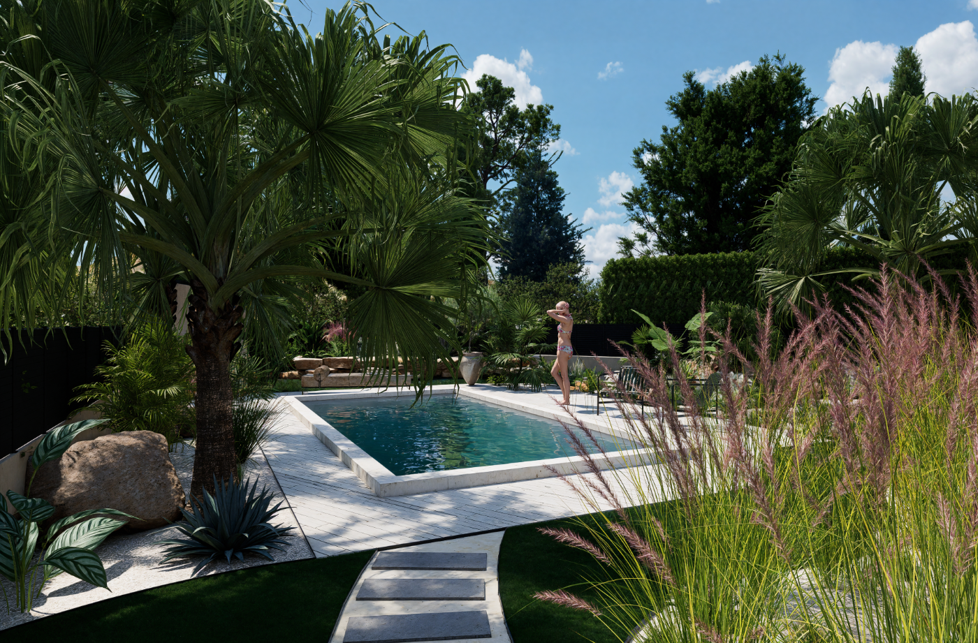 Projet de piscine avec aménagement complet des abords, pensé comme un véritable espace de vie extérieur