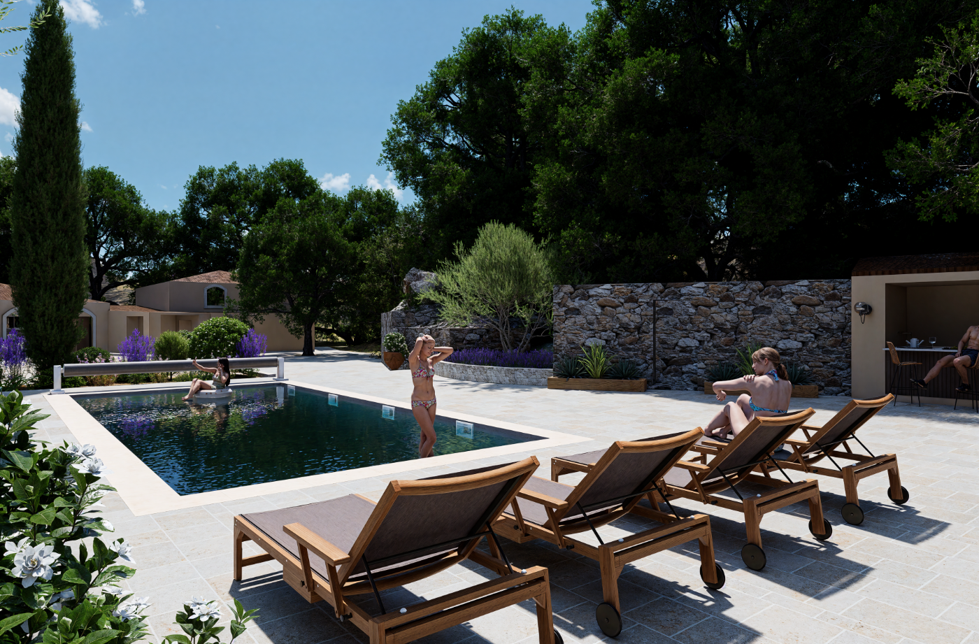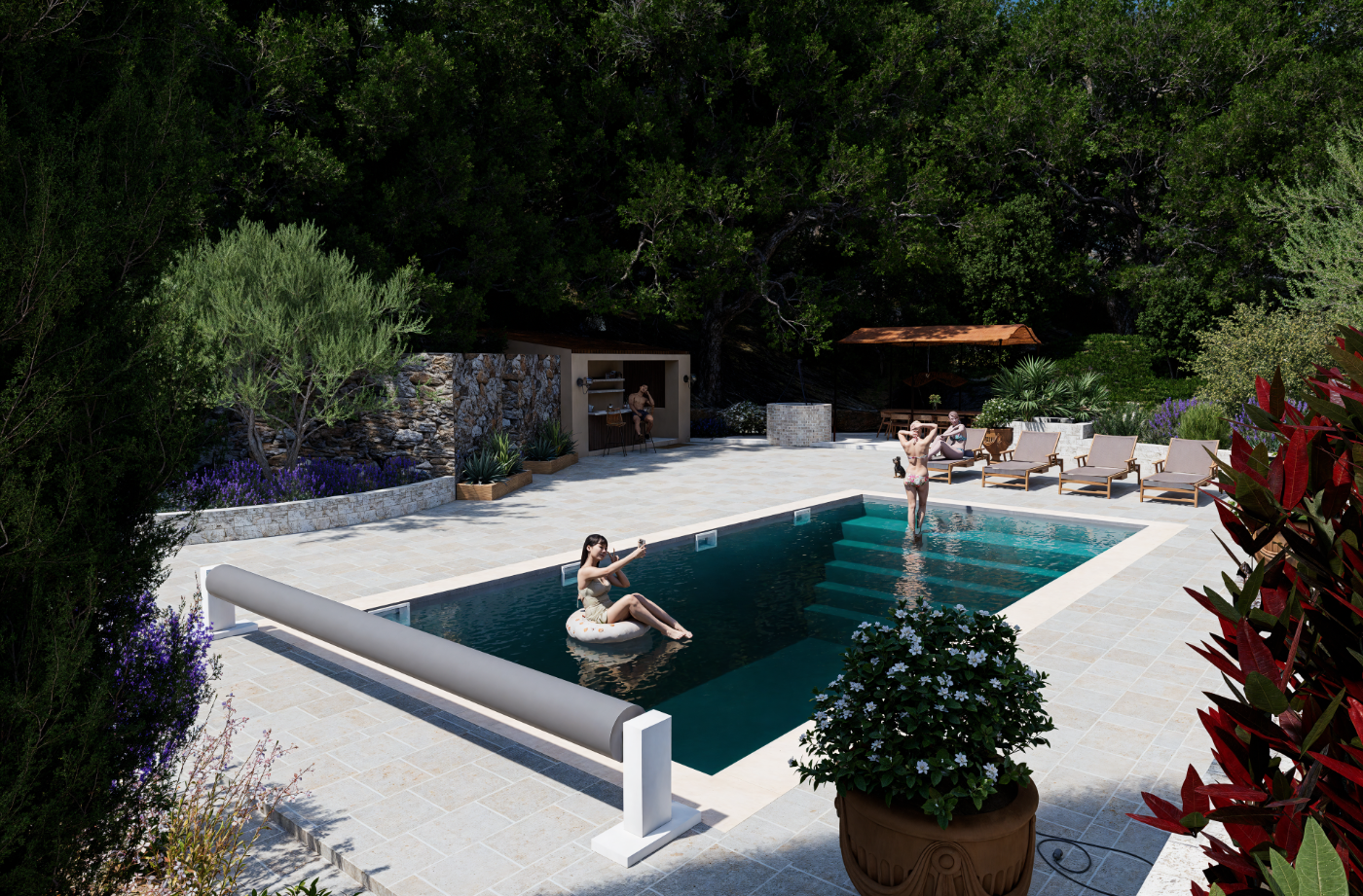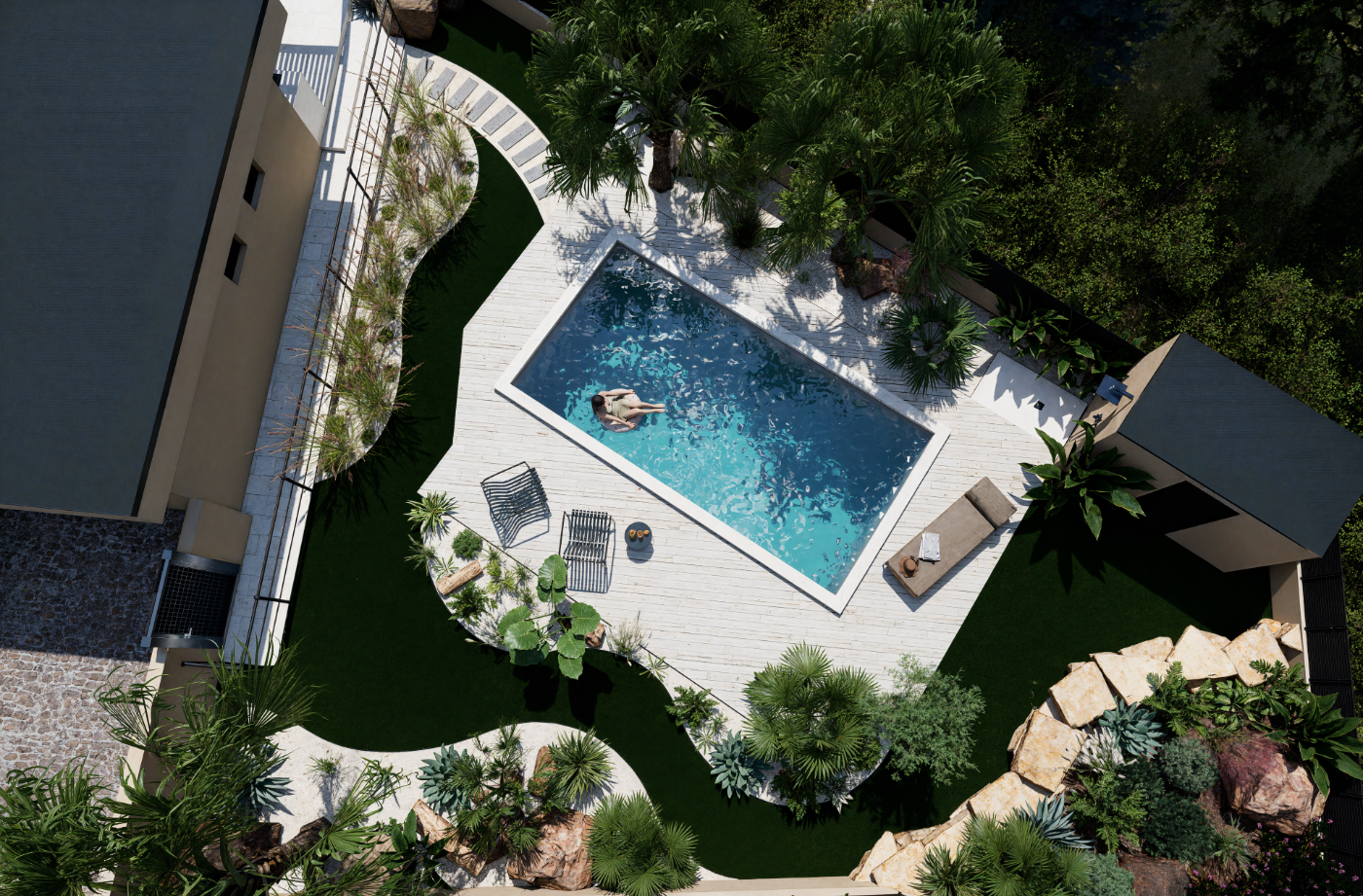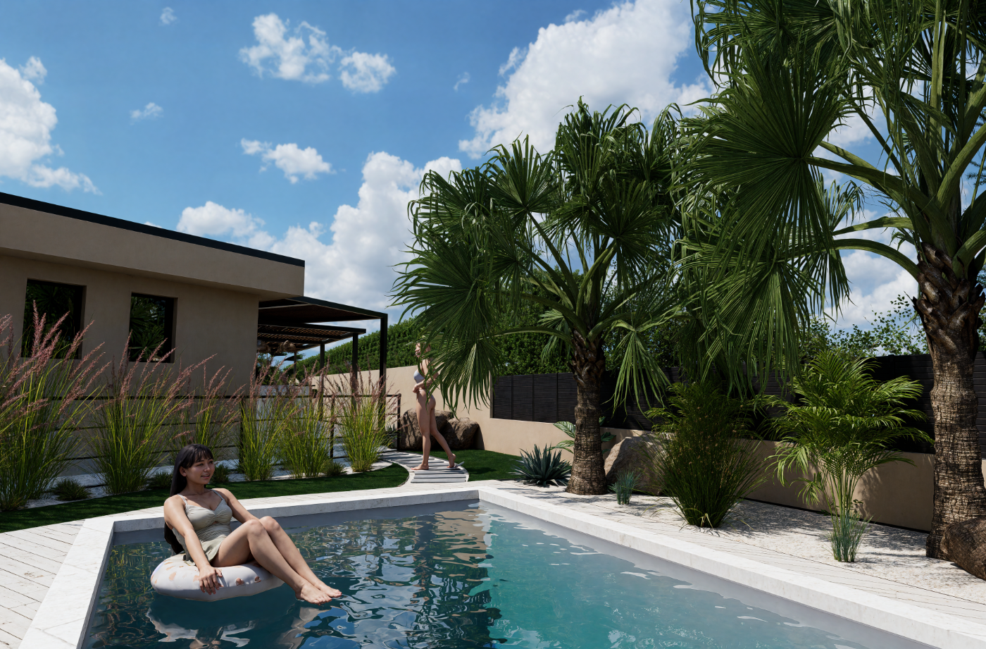 Projet de piscine avec aménagement complet des abords, pensé comme un véritable espace de vie extérieur