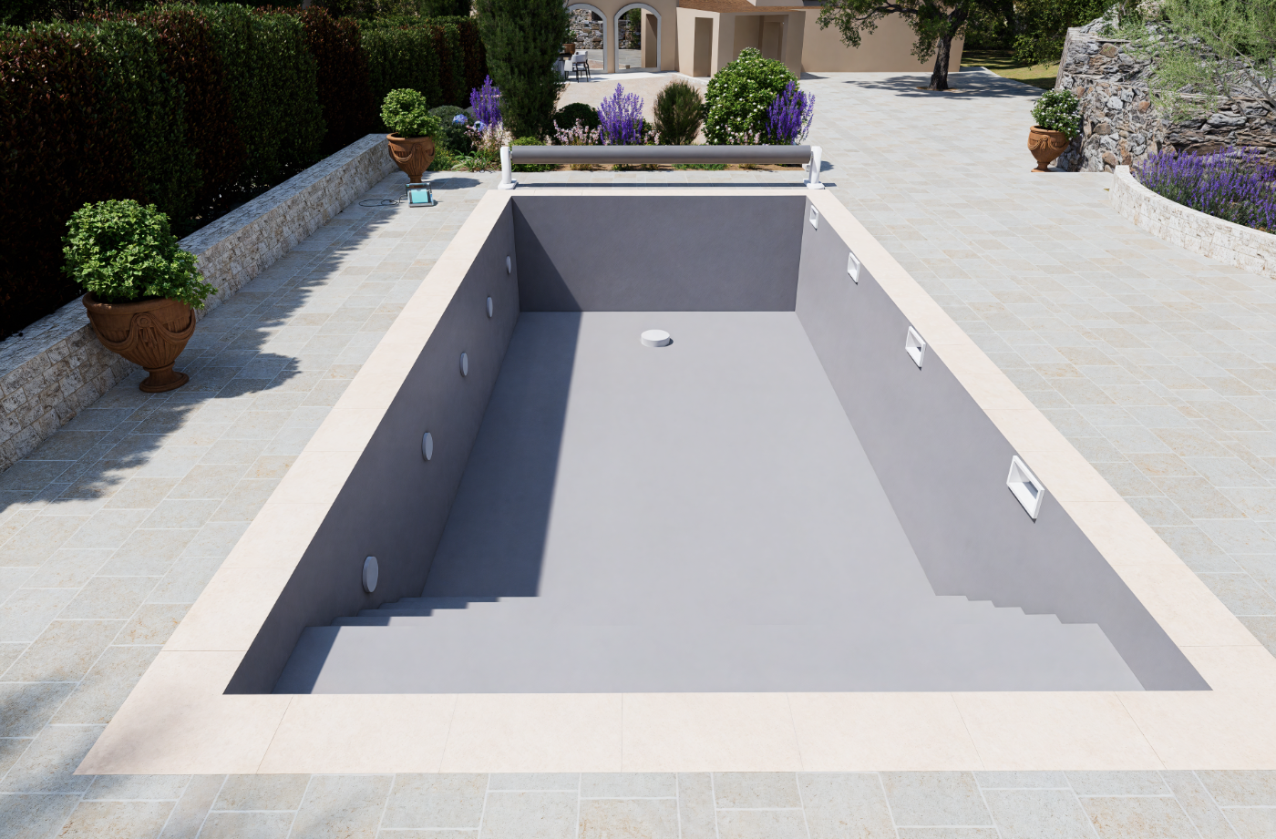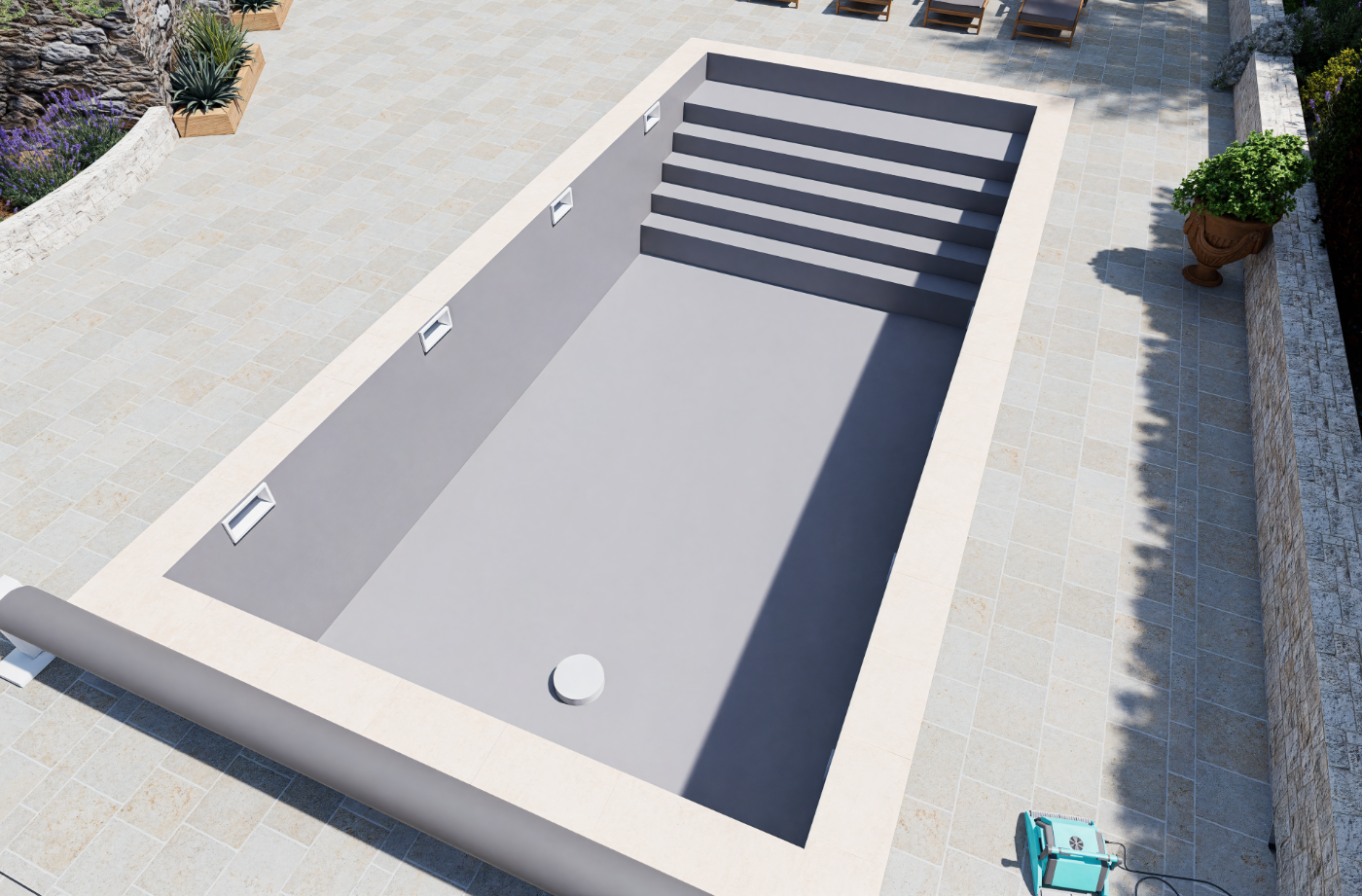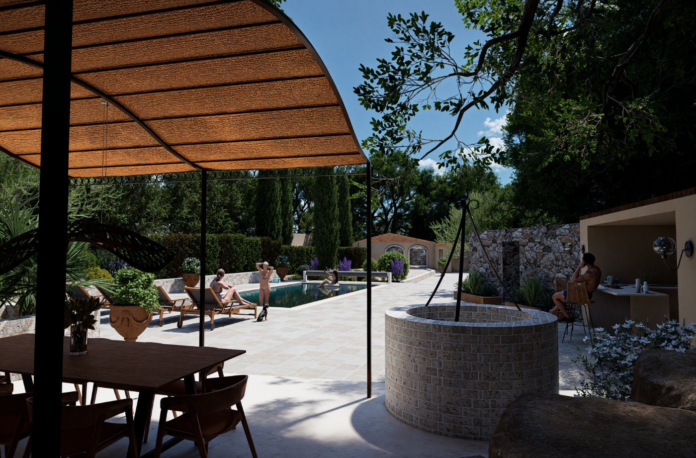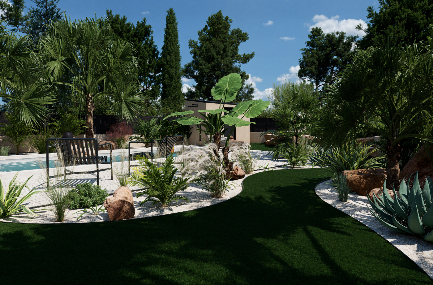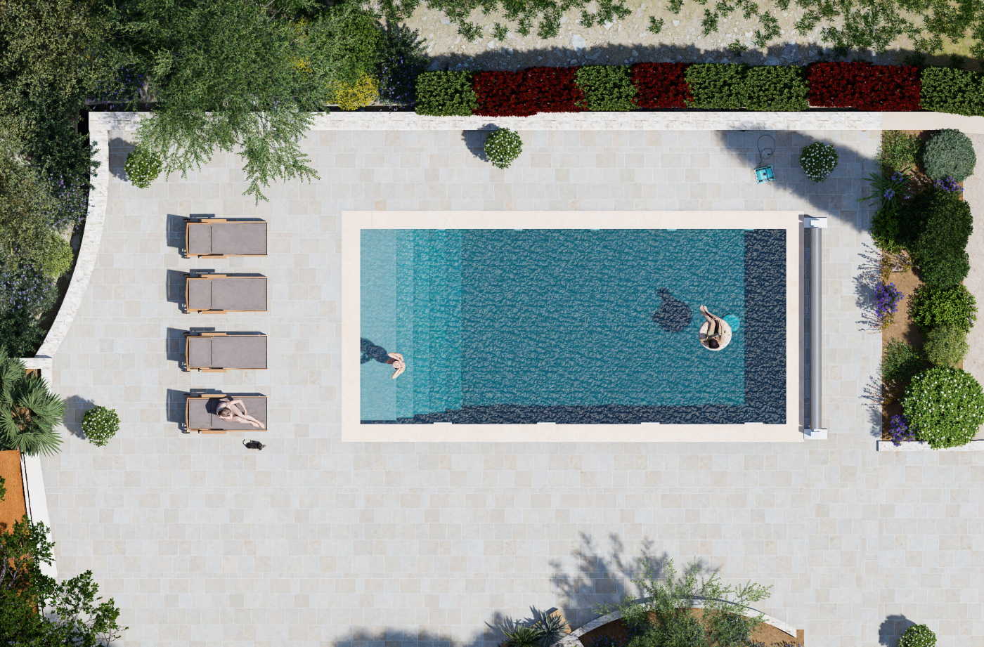Projet de piscine avec aménagement complet des abords, pensé comme un véritable espace de vie extérieur