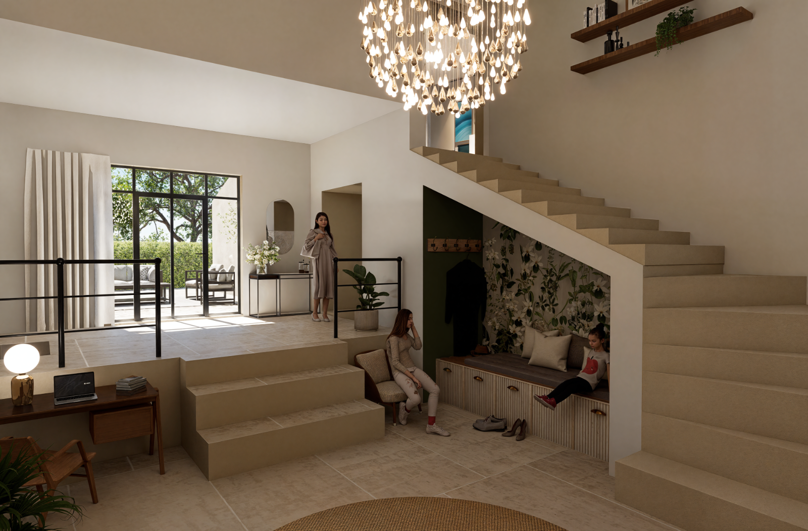 Simulation 3D de l’intérieur d’une maison, réalisée pour un particulier afin de se projeter dans son futur aménagement