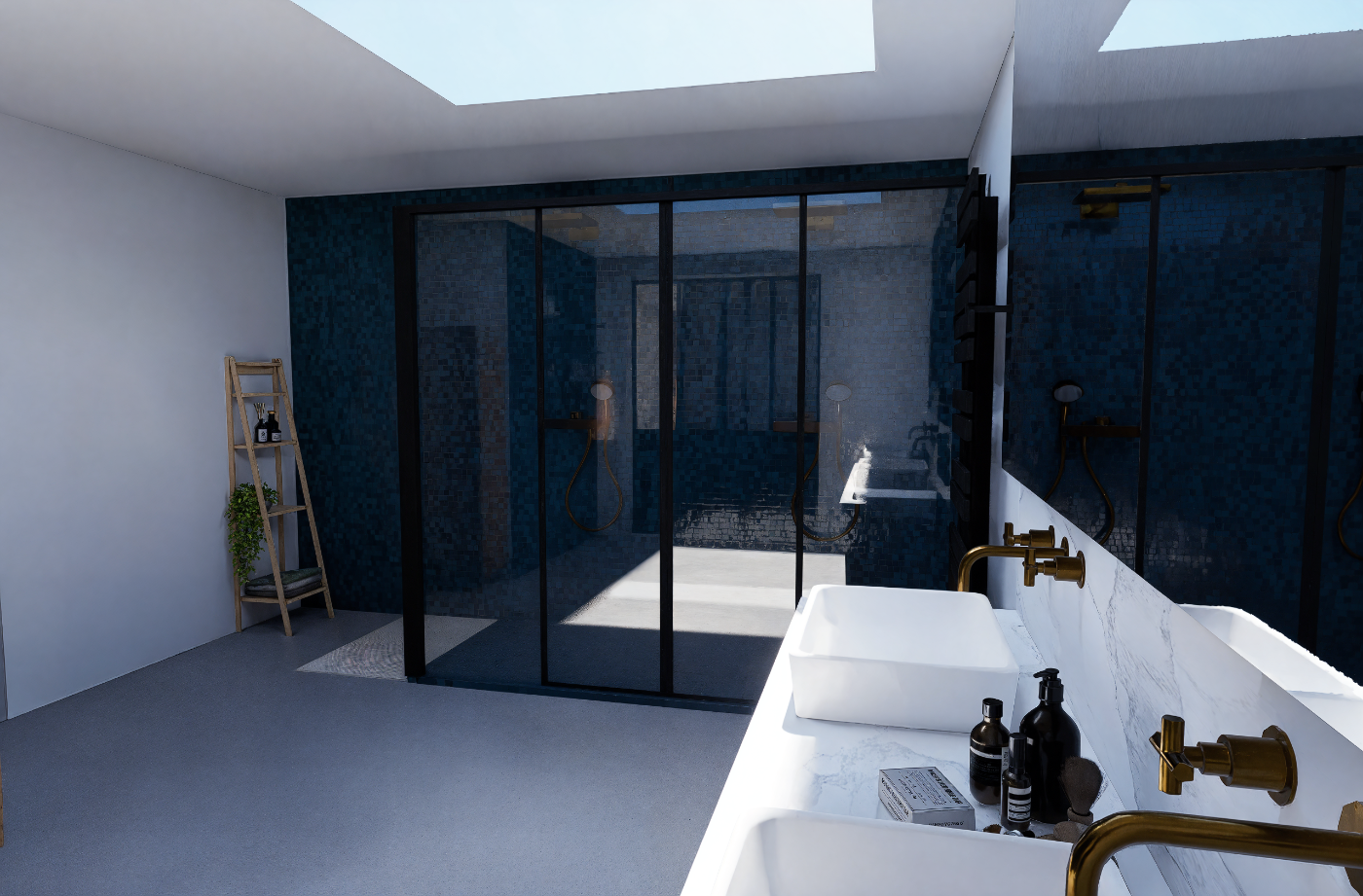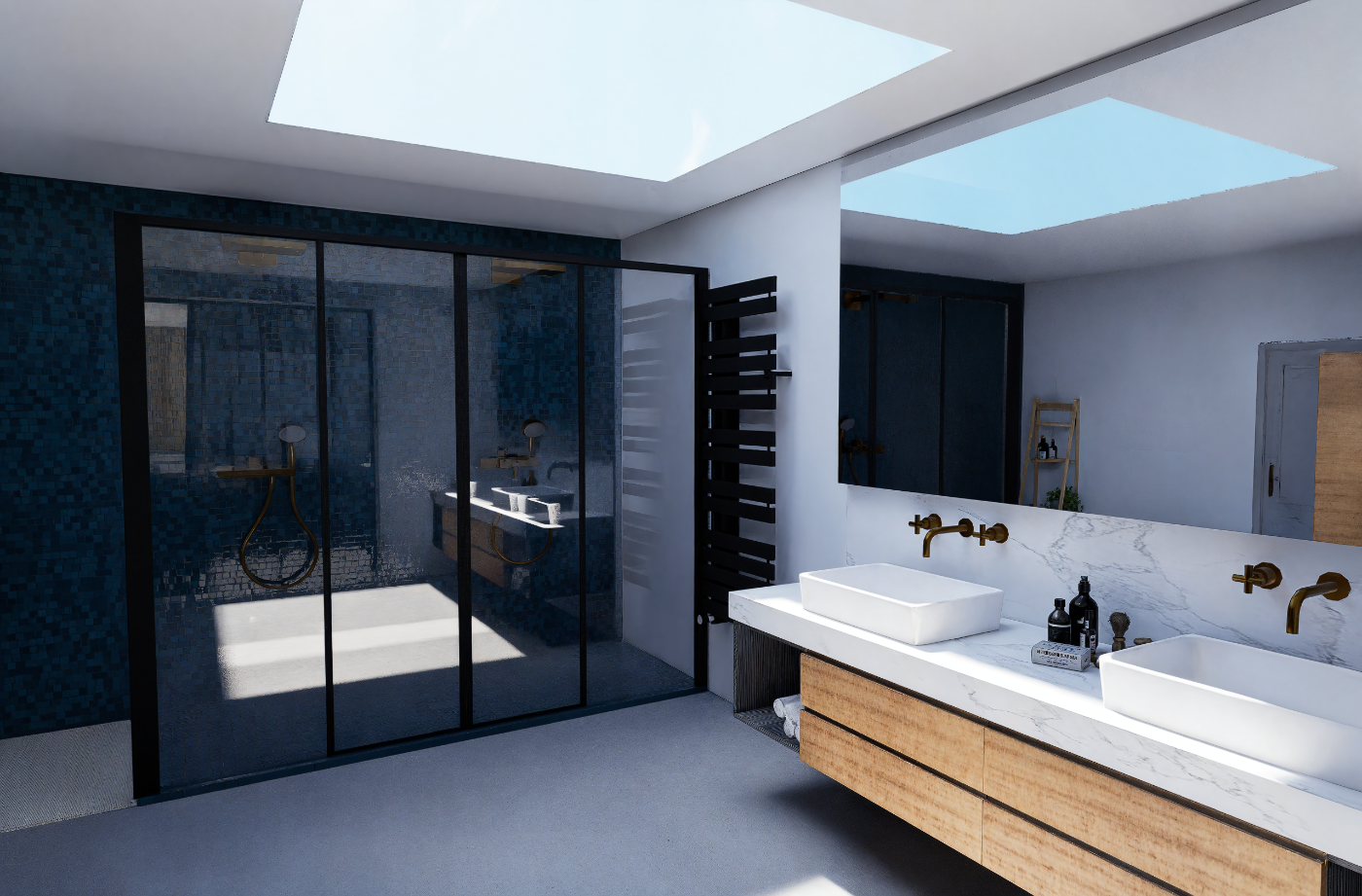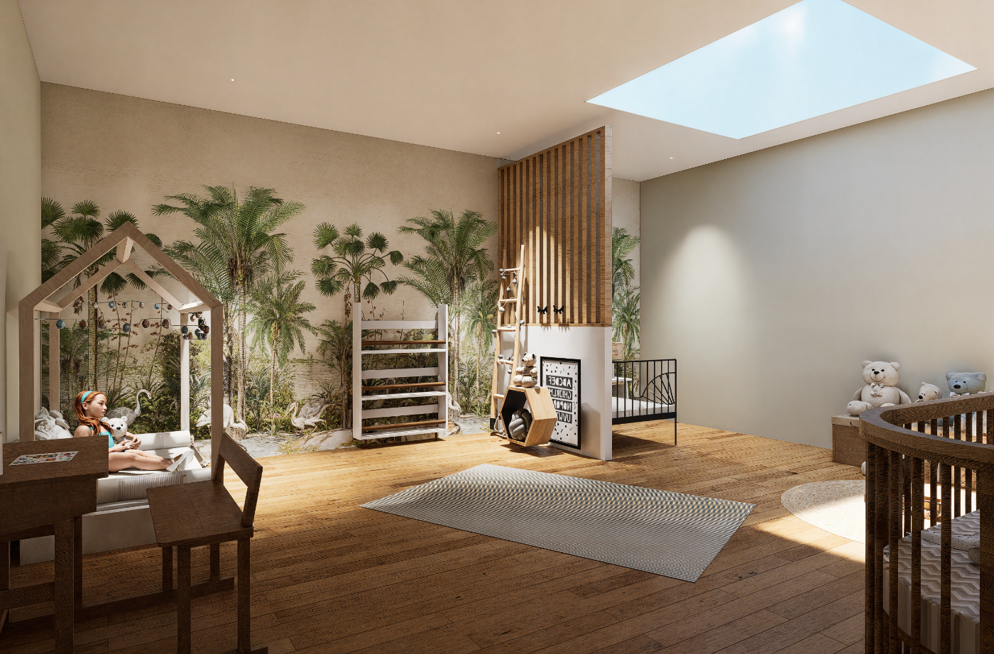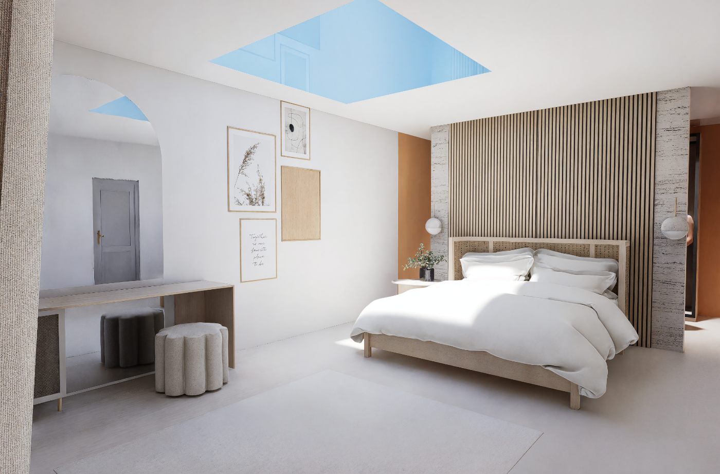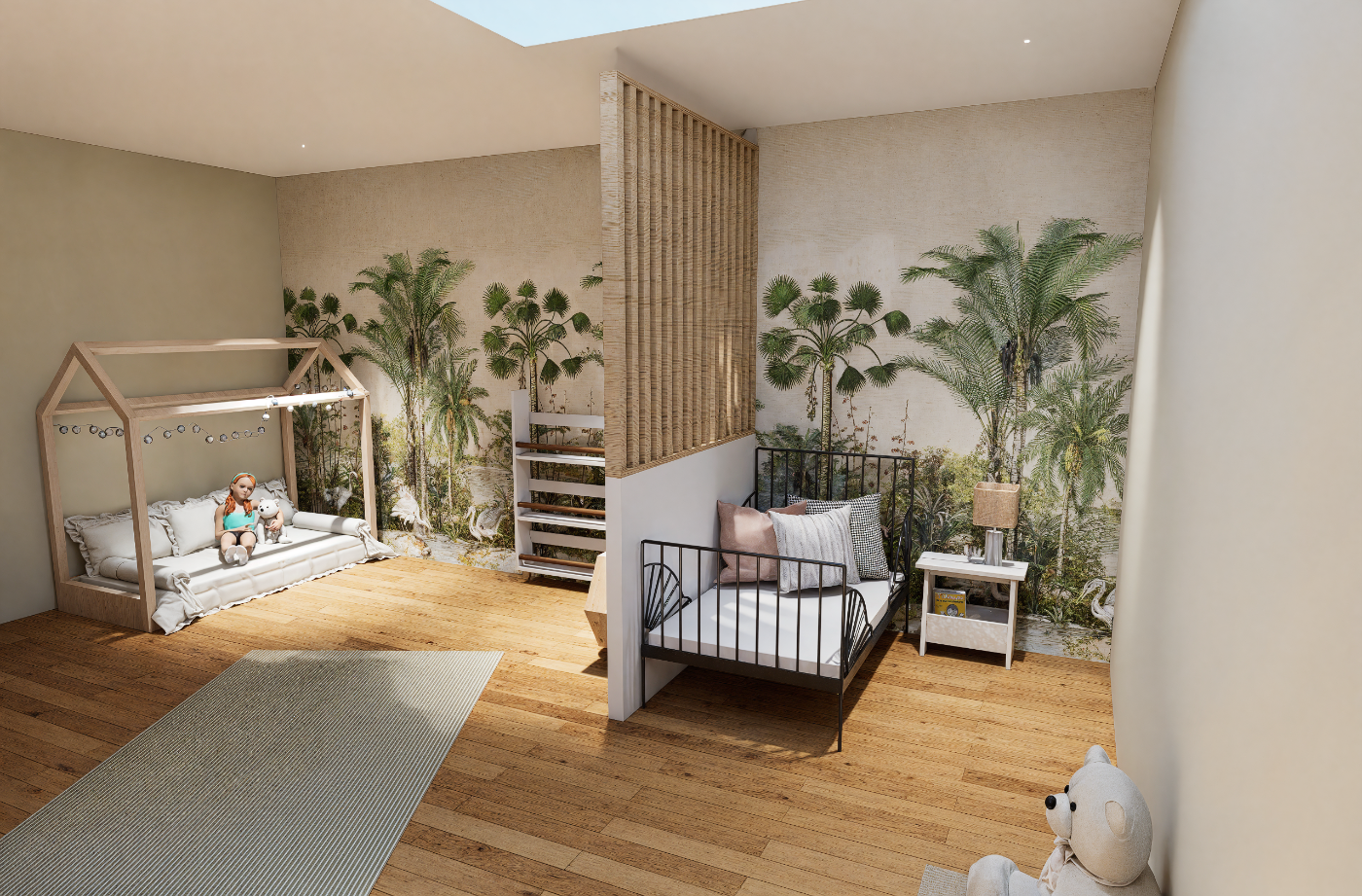 Mise en situation des futurs travaux pour l’aménagement intérieur d’un étage, permettant aux particuliers de se projeter dans les volumes, les circulations et les ambiances avant le démarrage du chantier
