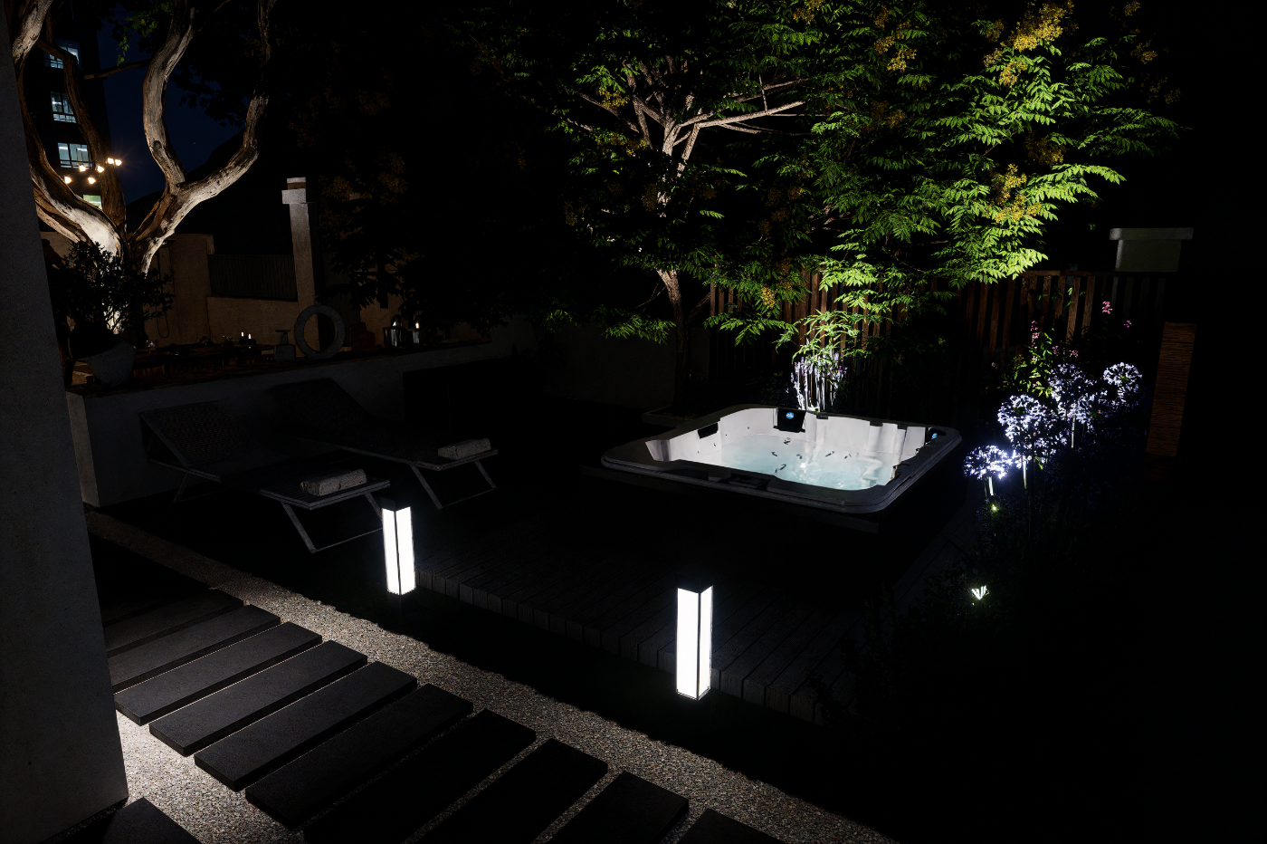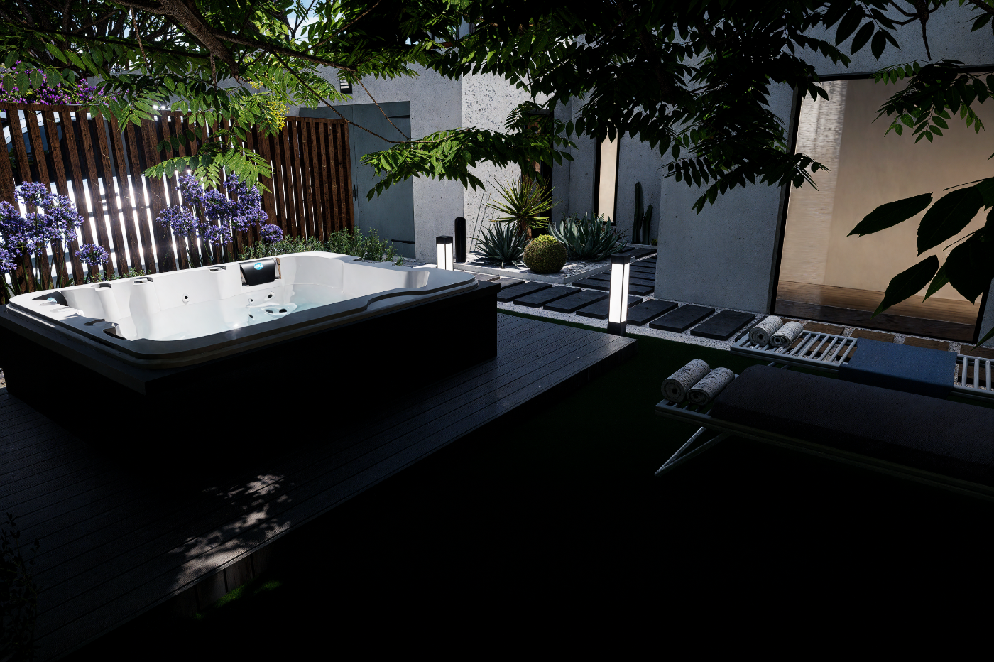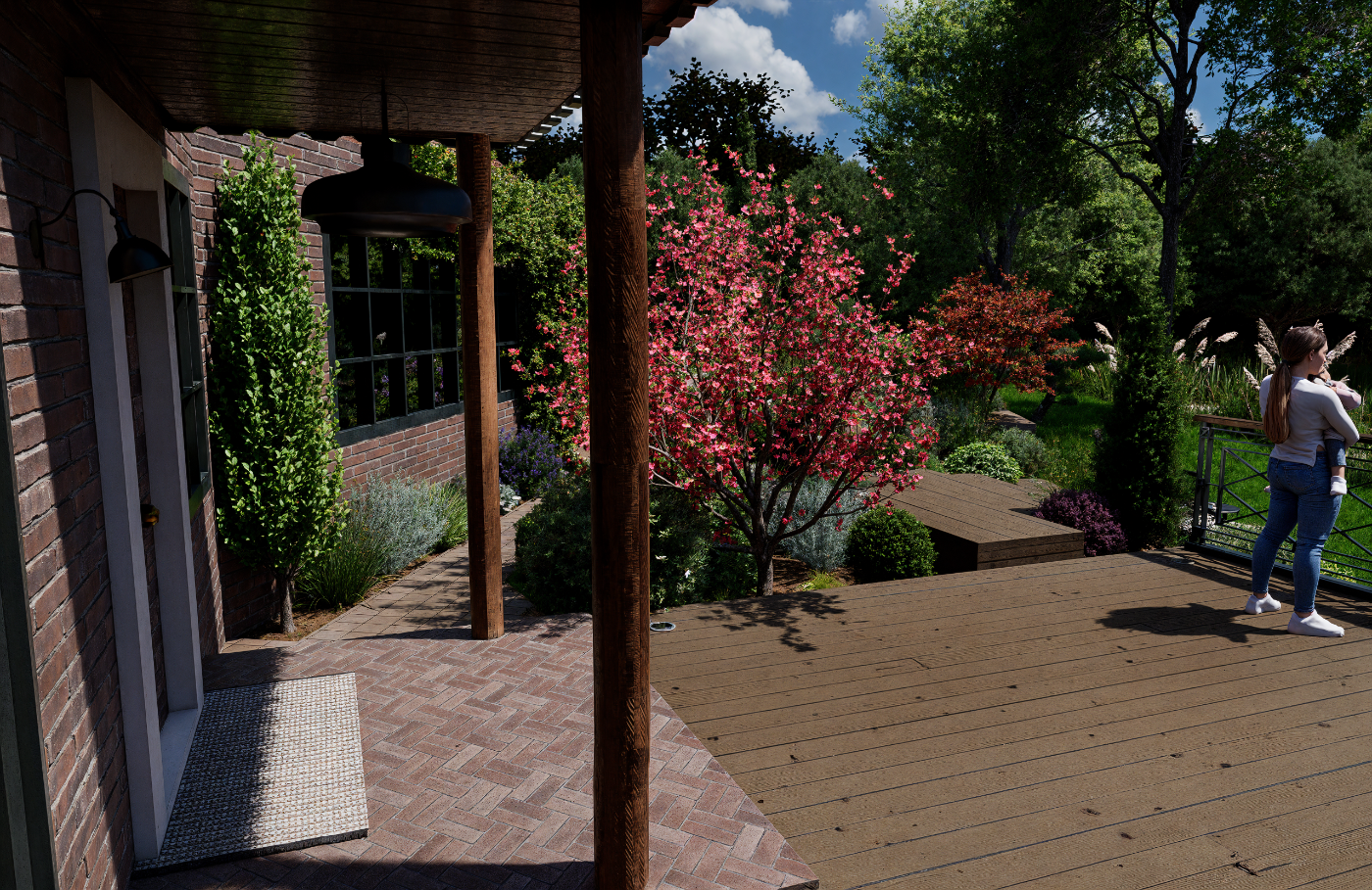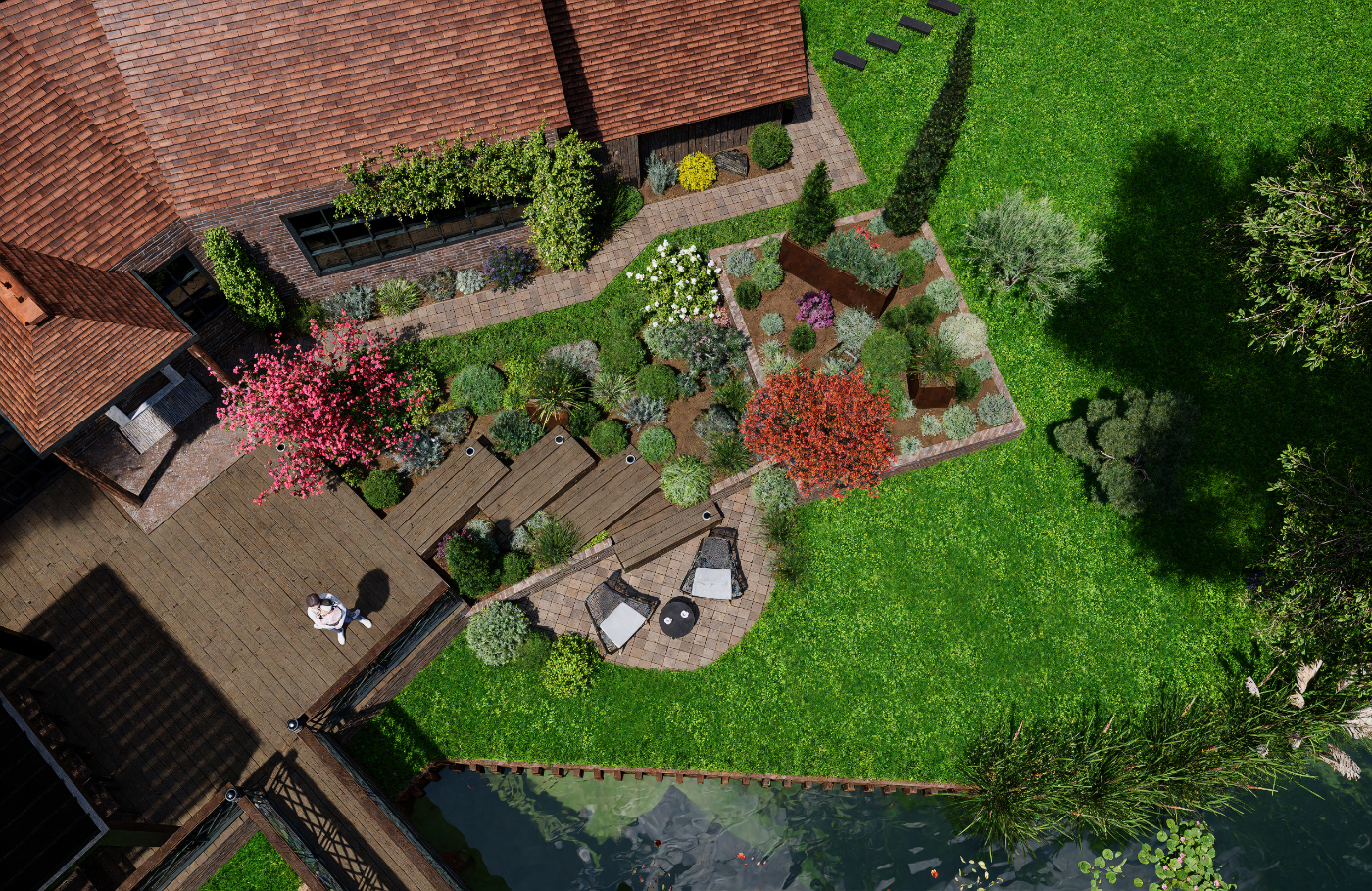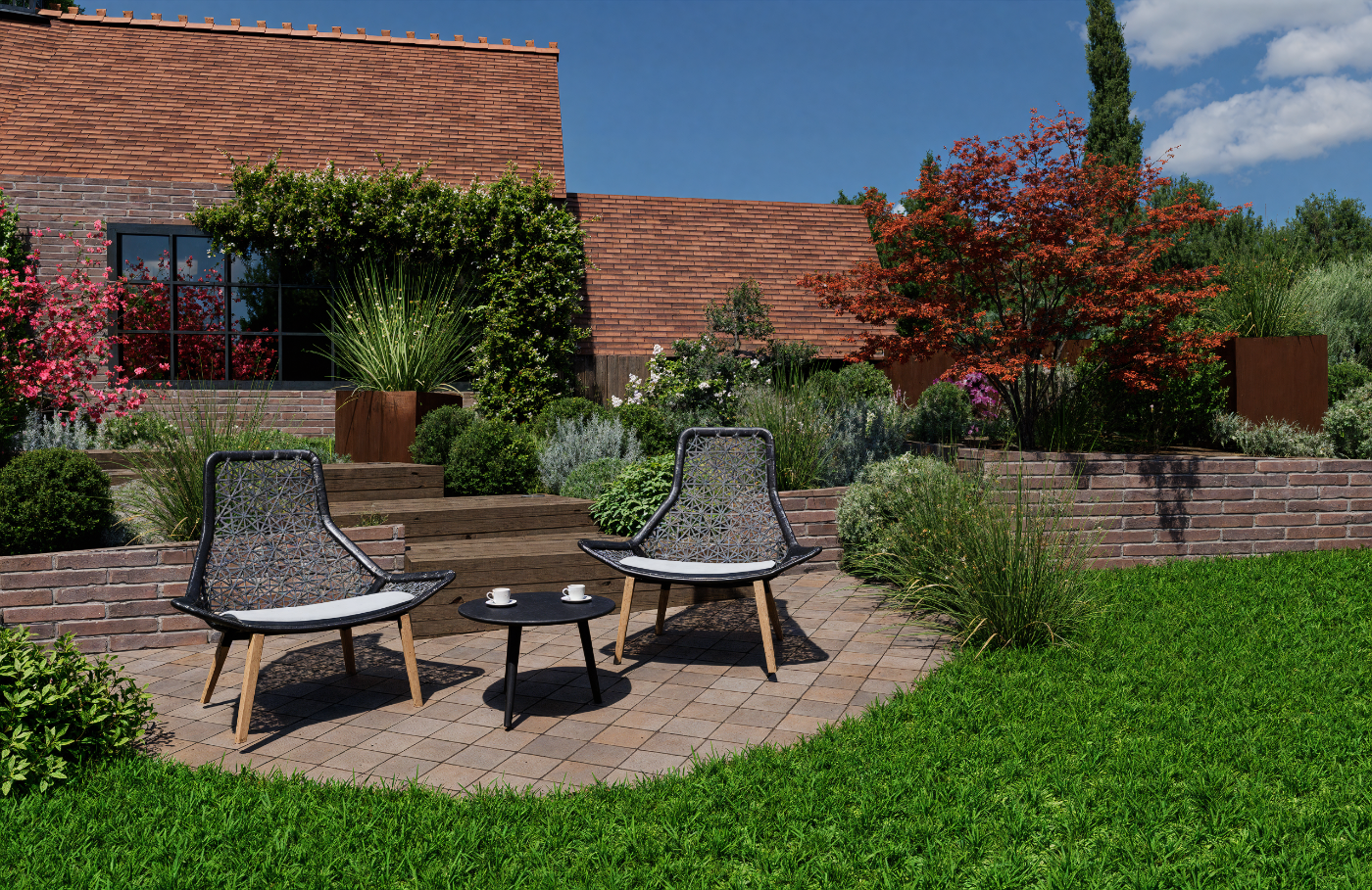 Aménagement extérieur complet et harmonieux.
