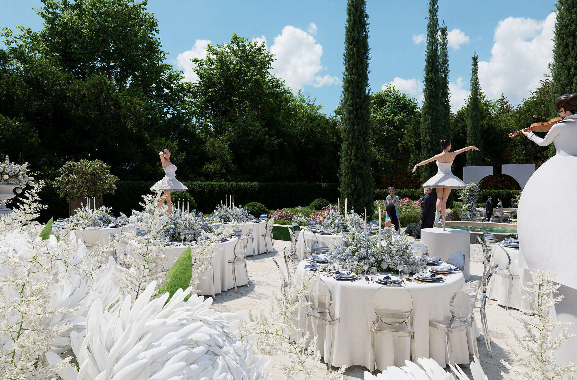 Un événement à venir, une configuration de mariage, une mise en scène scénarisée de votre lieu avec décoration, agencement et ambiance.
