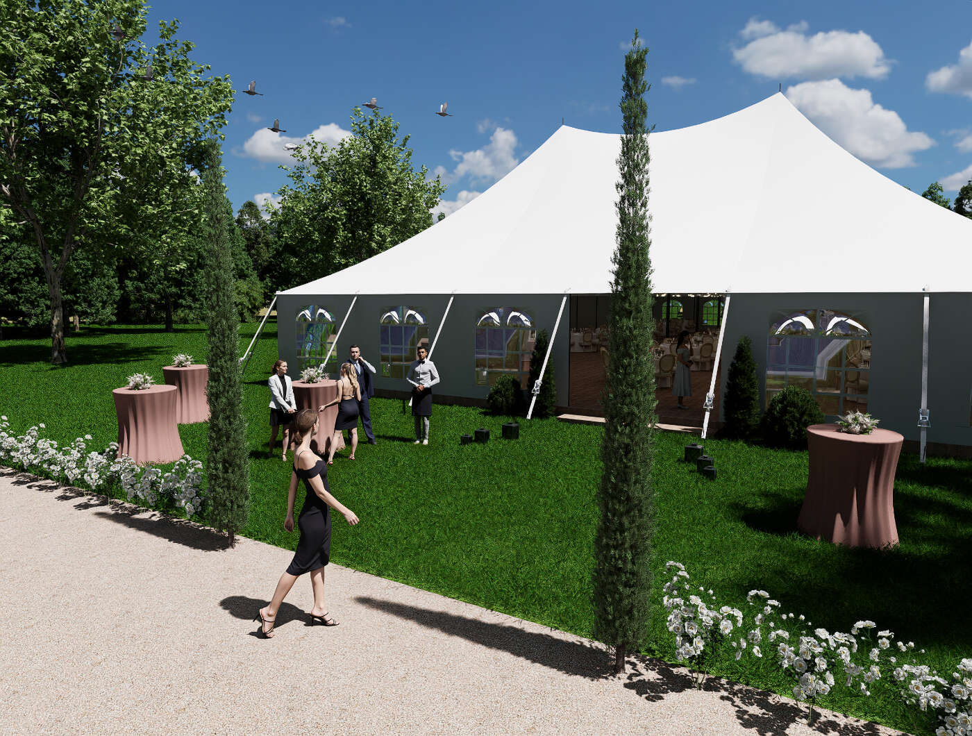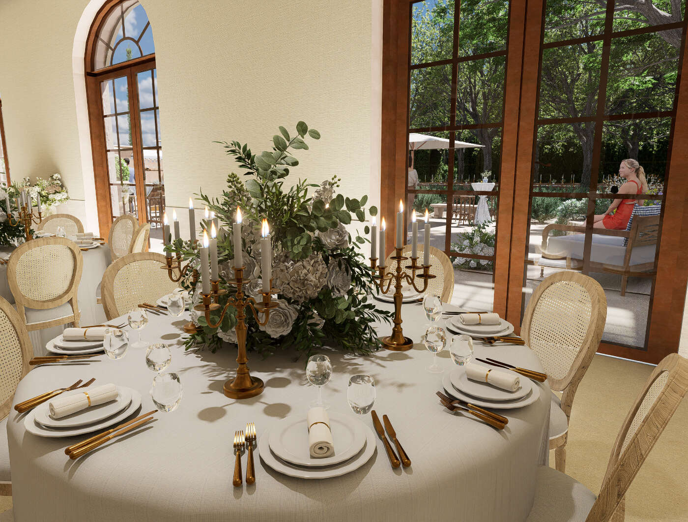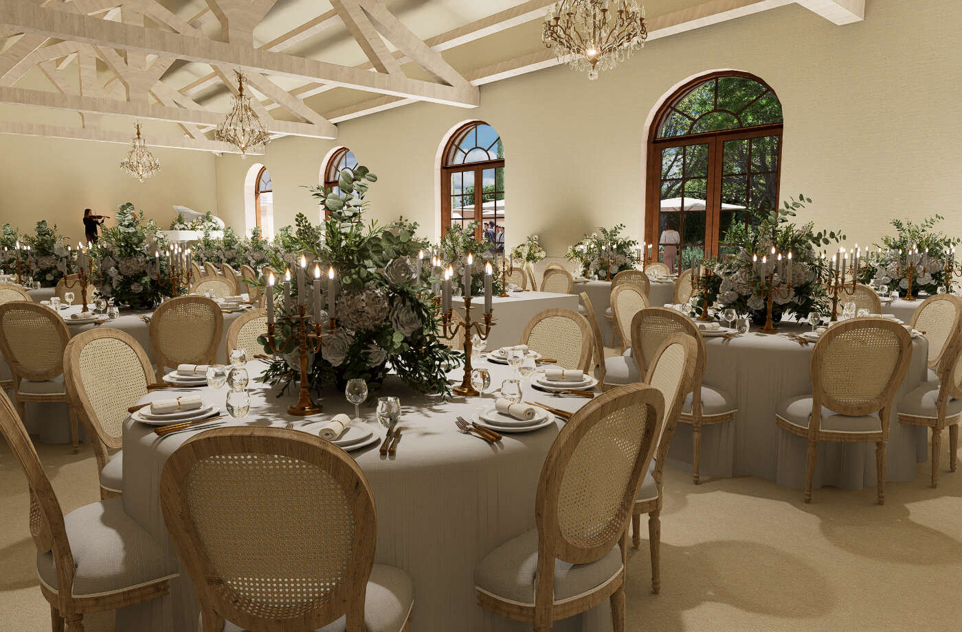 - Montrer plusieurs configurations possibles : dîner assis, cocktail, cérémonie…