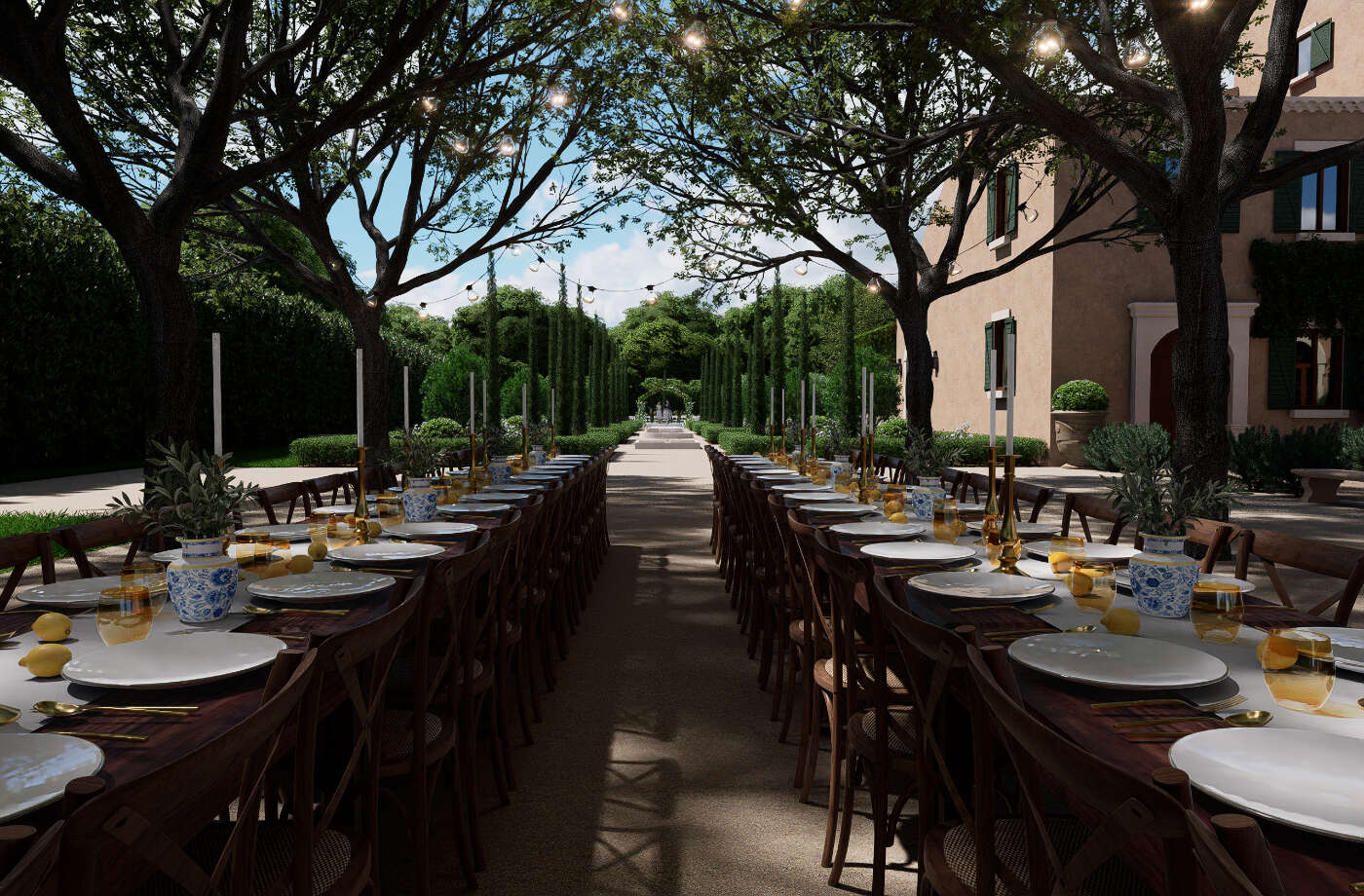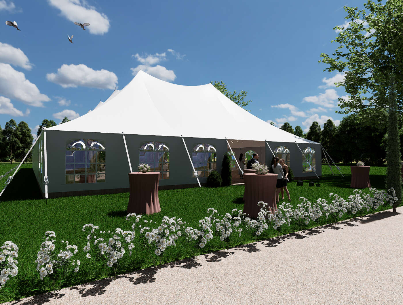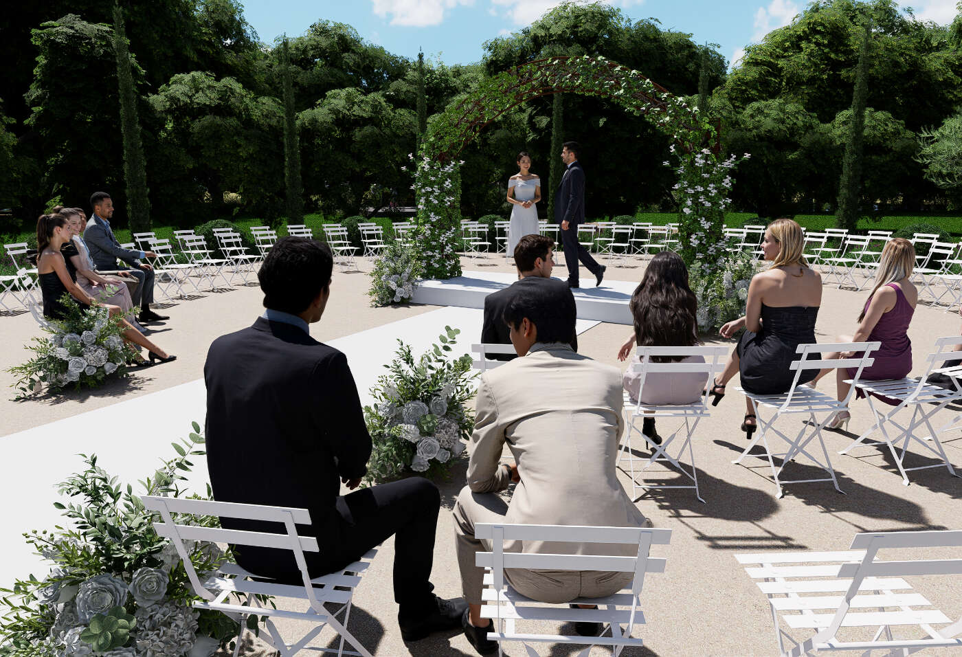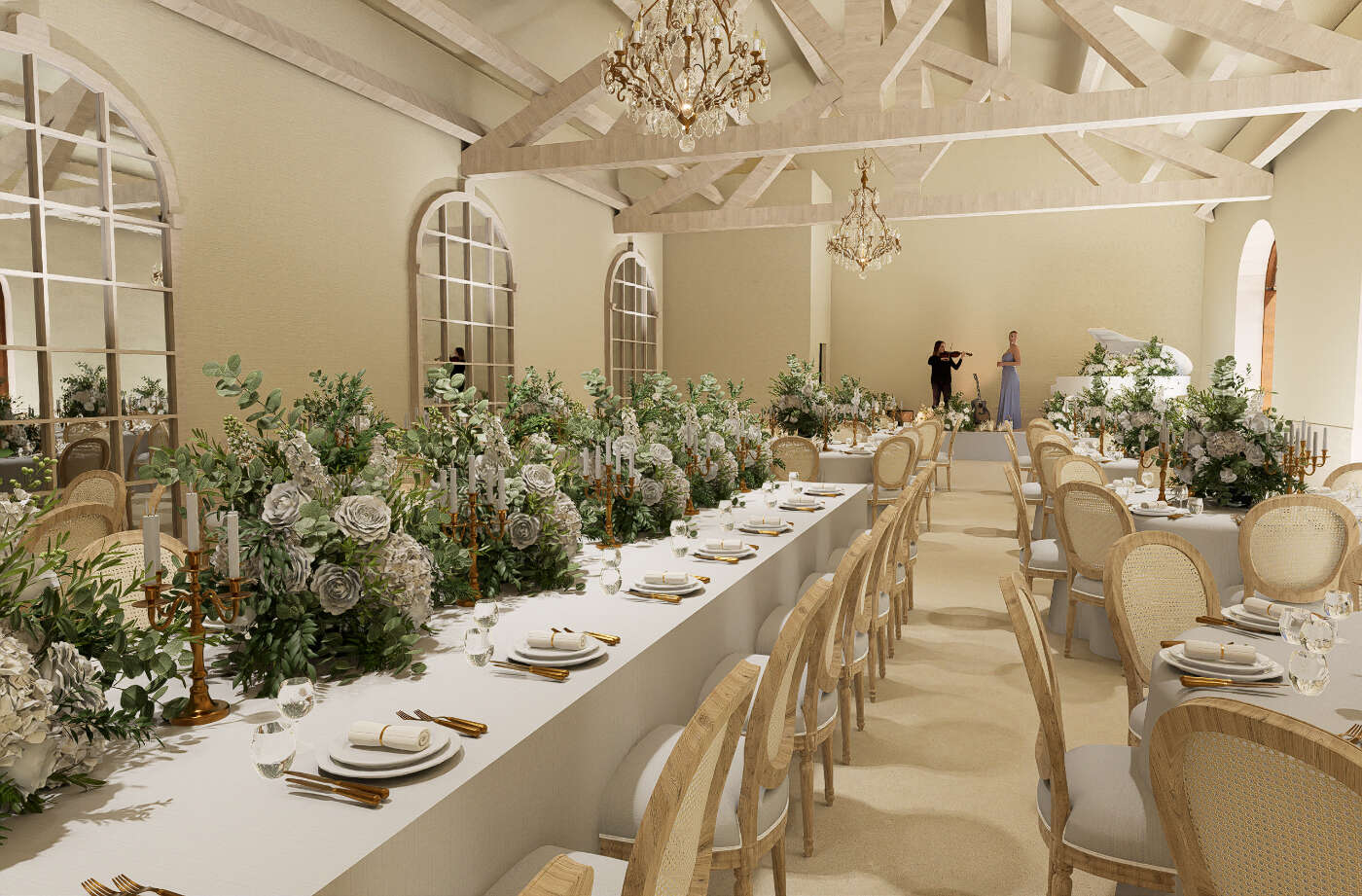 - Montrer plusieurs configurations possibles : dîner assis, cocktail, cérémonie…